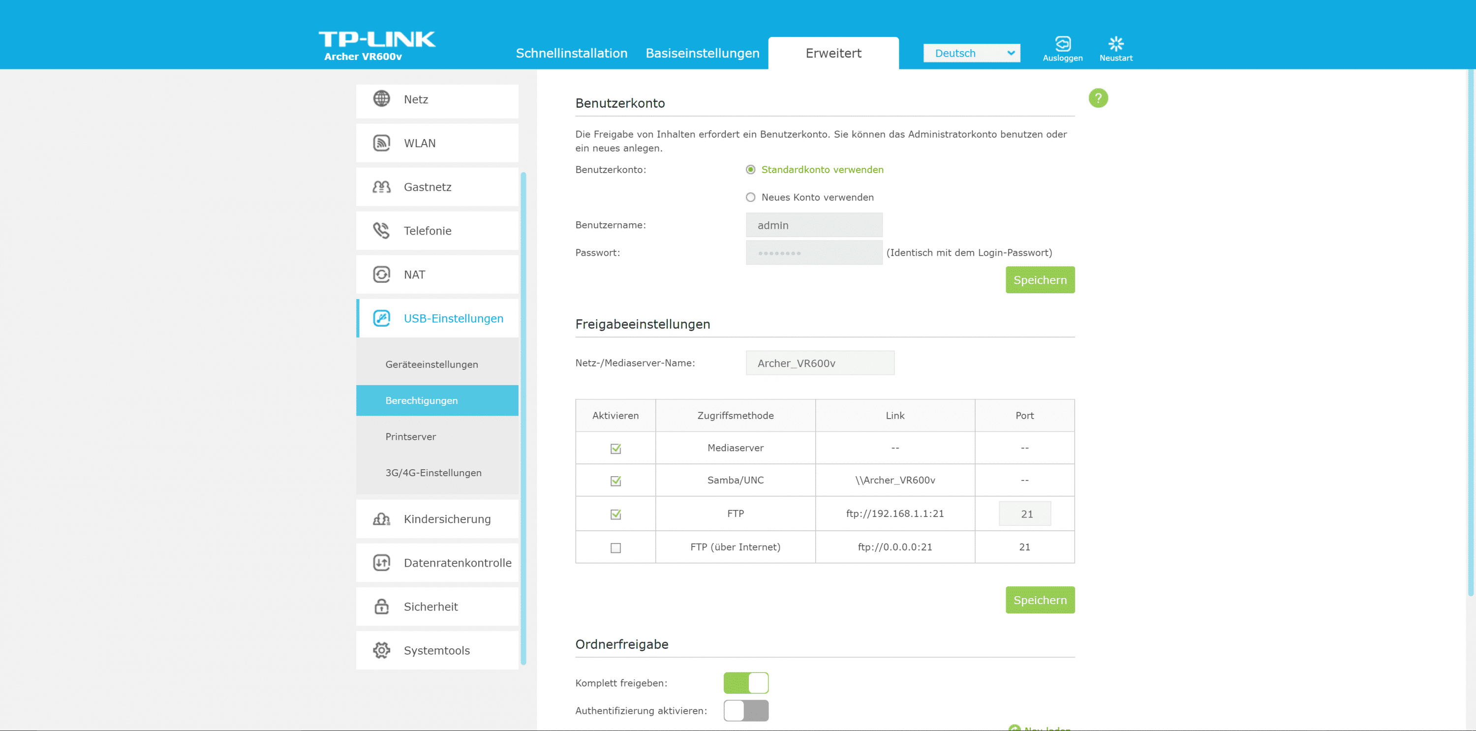 Software des TP-Link Archer VR600v