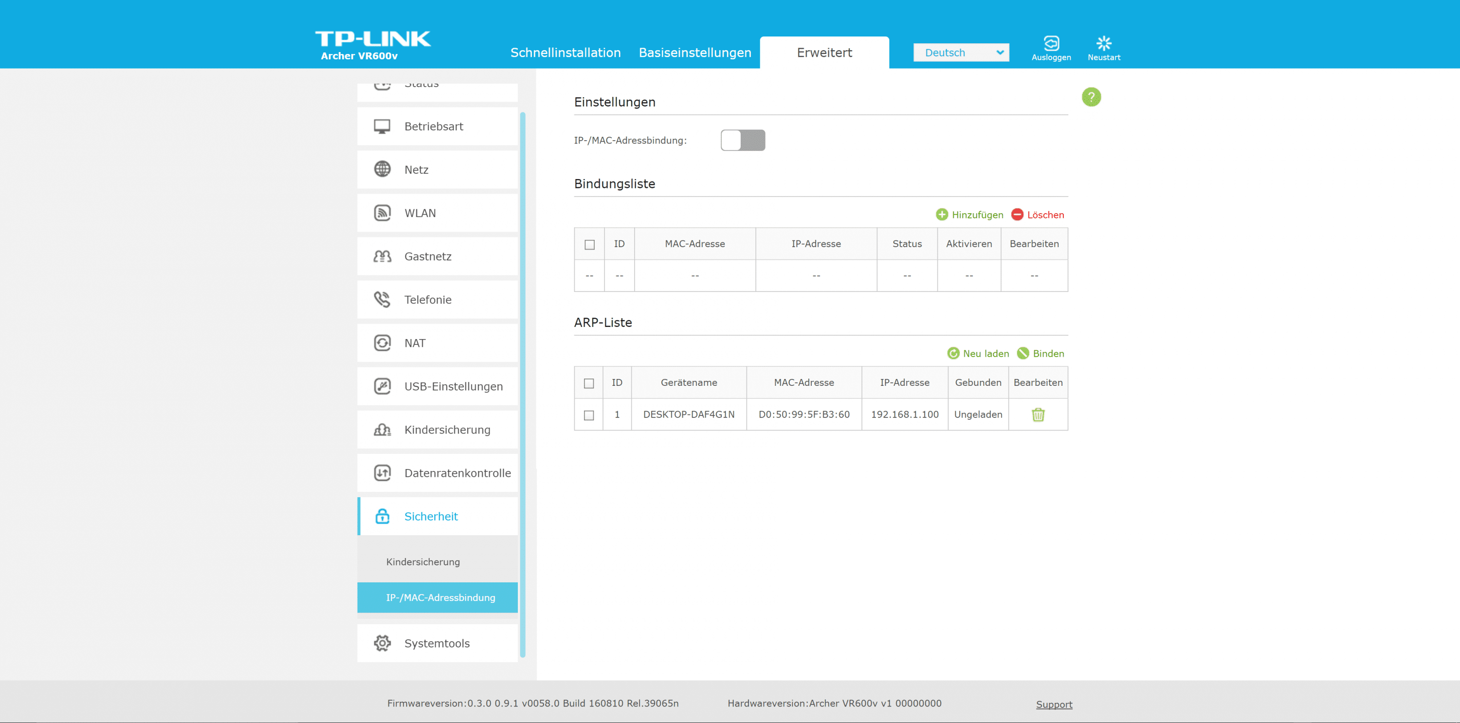 DSL-Unterstützung des Archer VR600v