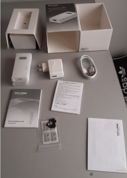 Der TP-Link M5360 wird mit einem USB-Ladegerät, einem USB-Adapter, Anleitungen und den SIM-Karten Adaptern geschickt. Mit dem Ladekabel kann man sowohl Smartphones als auch das Gerät selber laden. Dies ist sehr gut gemacht, denn dafür braucht man nun kein extra Ladekabel.