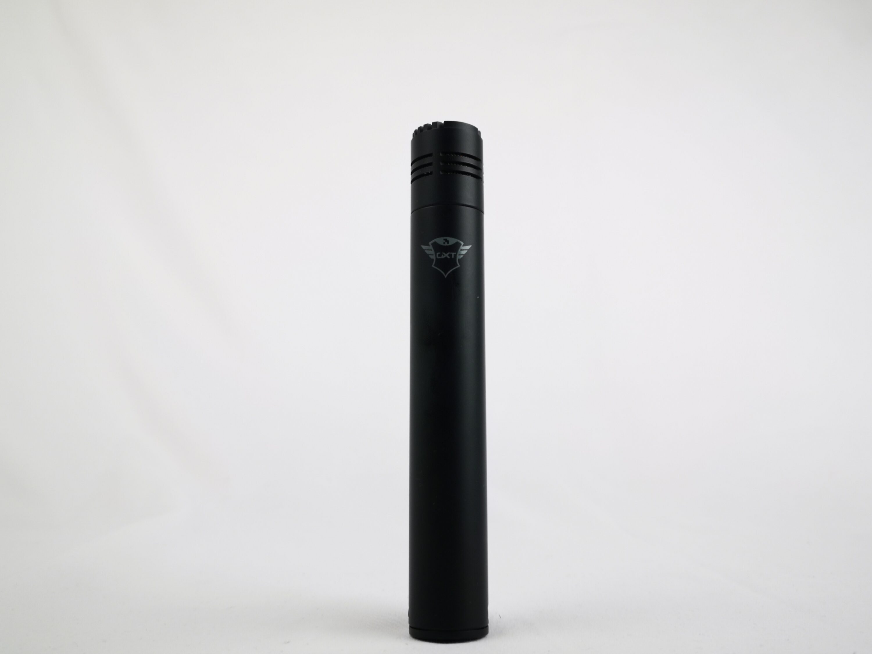 Beginnen wir mit dem Mikrofon selbst. Die Form ähnelt einer ziemlich großen Batterie. Das Metallgehäuse ist komplett in mattem Schwarz gehalten und wurde mit einem kleinen weißen Trust-GXT-Logo verziert. Das Mikrofon macht einen sehr wertigen Eindruck, welcher durch das Gewicht bestärkt wird. Ein CE-Aufkleber wurde an der unteren Seite (wenn Trust-Logo oben) verklebt. Dieser fällt im Alltag auch nicht weiter auf, da er, wenn das Mikrofon richtig platziert ist, nicht zu sehen ist. Alternativ kann man ihn auch einfach abziehen. Der obere Teil ist mit einer Abdeckung versehen, hinter dem sich das Kondensator-Mikrofon versteckt. Die Abdeckung ist mit Einkerbungen und Schlitzen versehen, durch die eure Stimme eindringen kann. Auf der Unterseite befindet sich der Knopf zum Stummschalten, eine LED und ein USB-C-Anschluss. Anhand der LED lässt sich erkennen, ob das Mikrofon gerade stumm geschaltet ist. Leuchtet die LED blau, ist das GXT 241 gerade aktiviert und leuchtet sie rot, ist es stummgeschaltet
