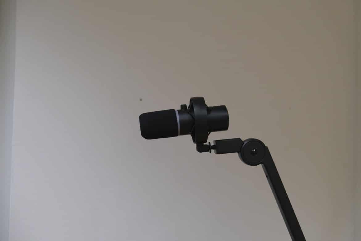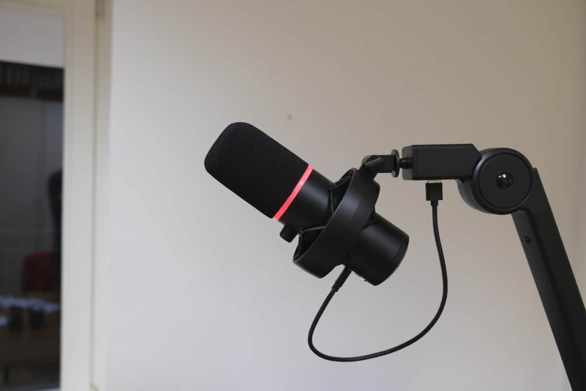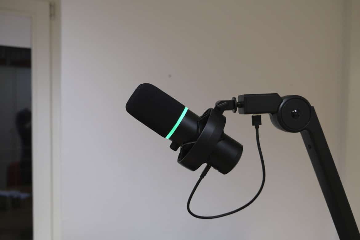 Danach wird der Mikrofonarm mithilfe des Stifts an der Unterseite in die Halterung eingesetzt und durch die Feststellschraube sicher in Position gebracht. Danach muss dann nur noch das Mikrofon an das obere Ende des Arms geschraubt und mithilfe des USB-A-auf-USB-C-Kabels mit dem Mikrofonarm verbunden werden. Hierfür stehen ganze zwei USB-A-Ports zur Verfügung. Nun gilt es nur noch, den Arm mithilfe der drei Feststellschrauben optimal auszurichten und die Konstruktion via USB-A mit PC, Notebook oder anderen Audioquellen zu verbinden.