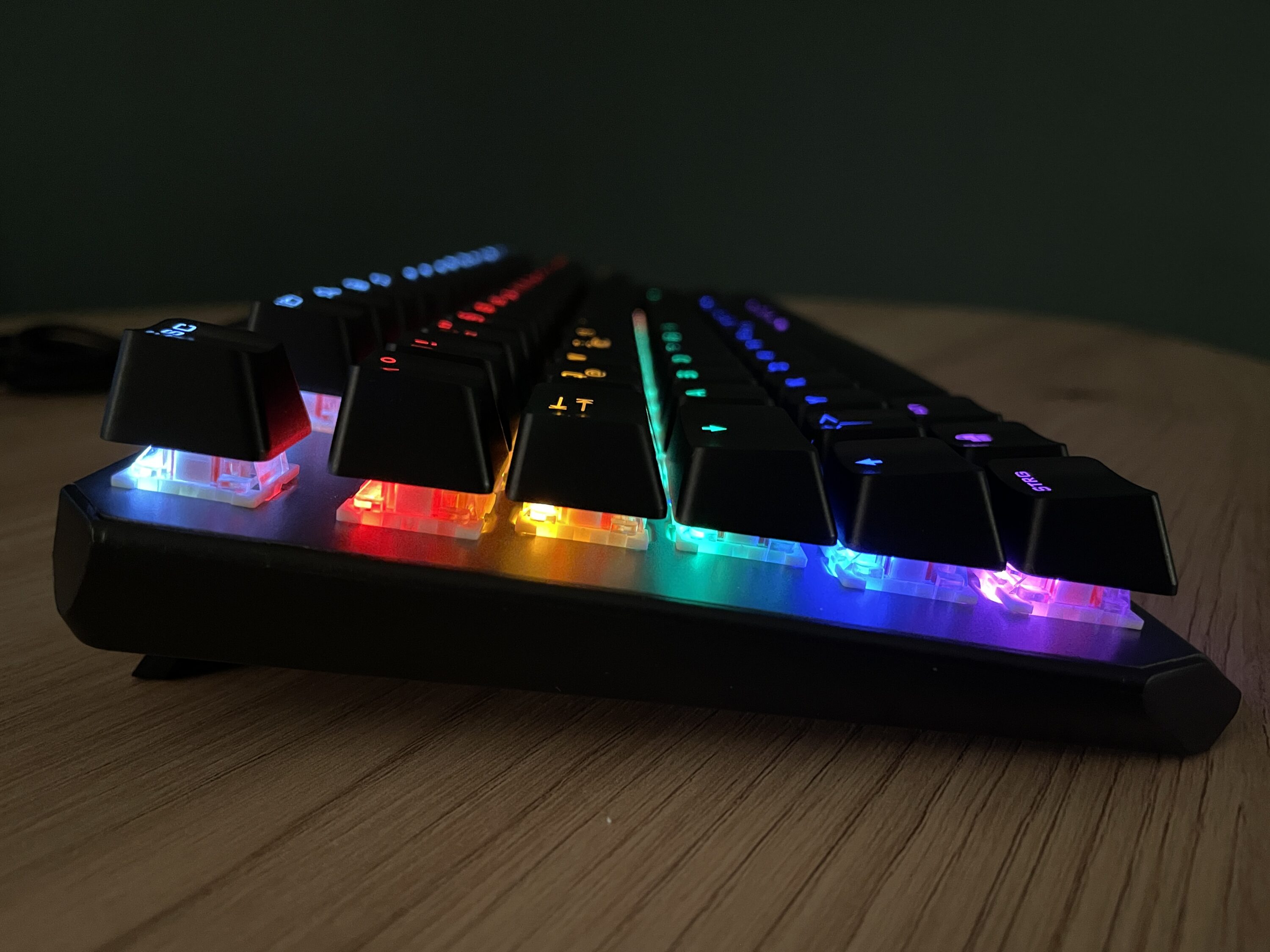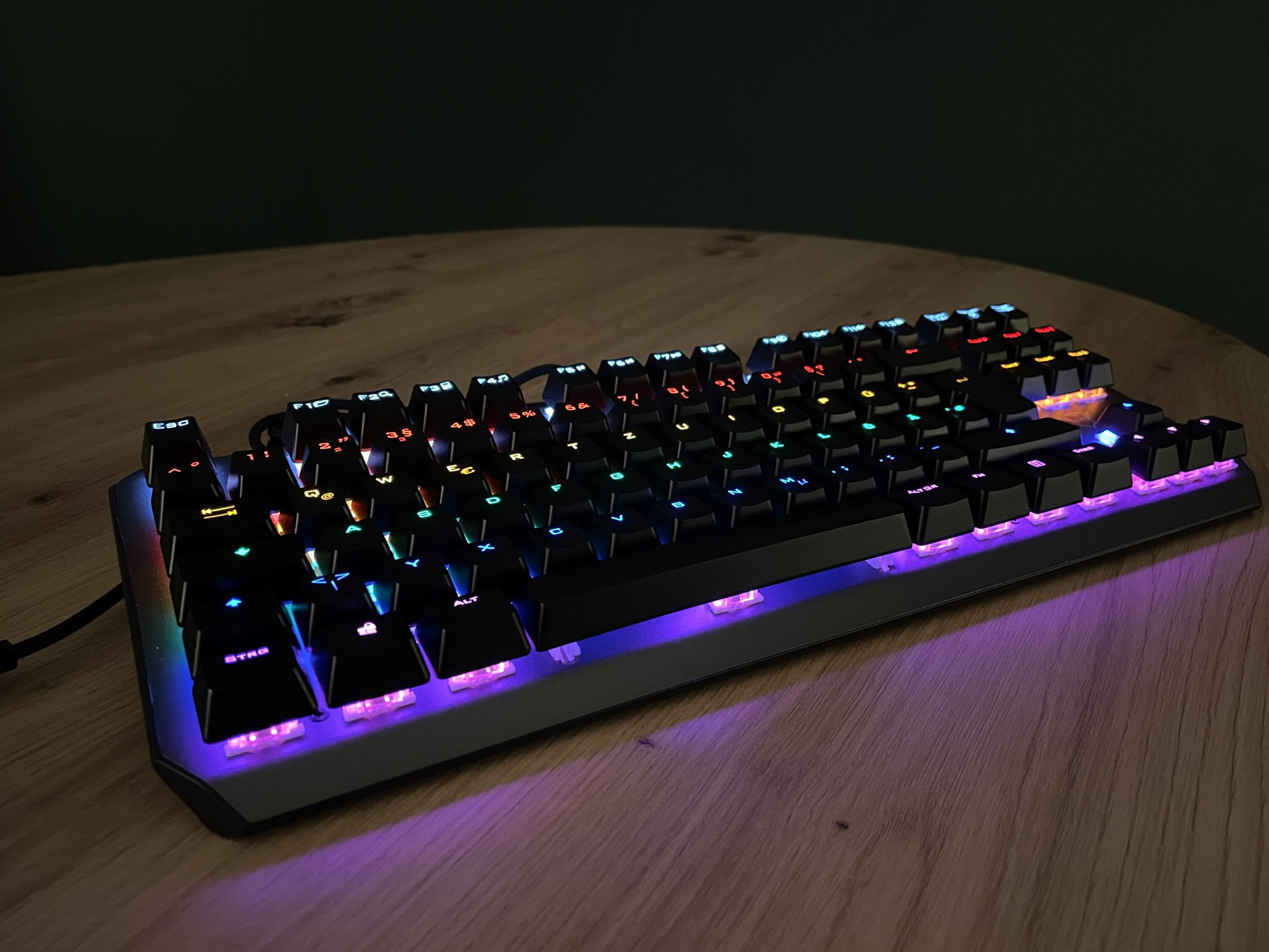 Eine solide mechanische Tastatur im Budget-Bereich. Die sich dank des kompakten Designs und der Beleuchtung in Regenbogenfarben auf keinem Schreibtisch verstecken muss.