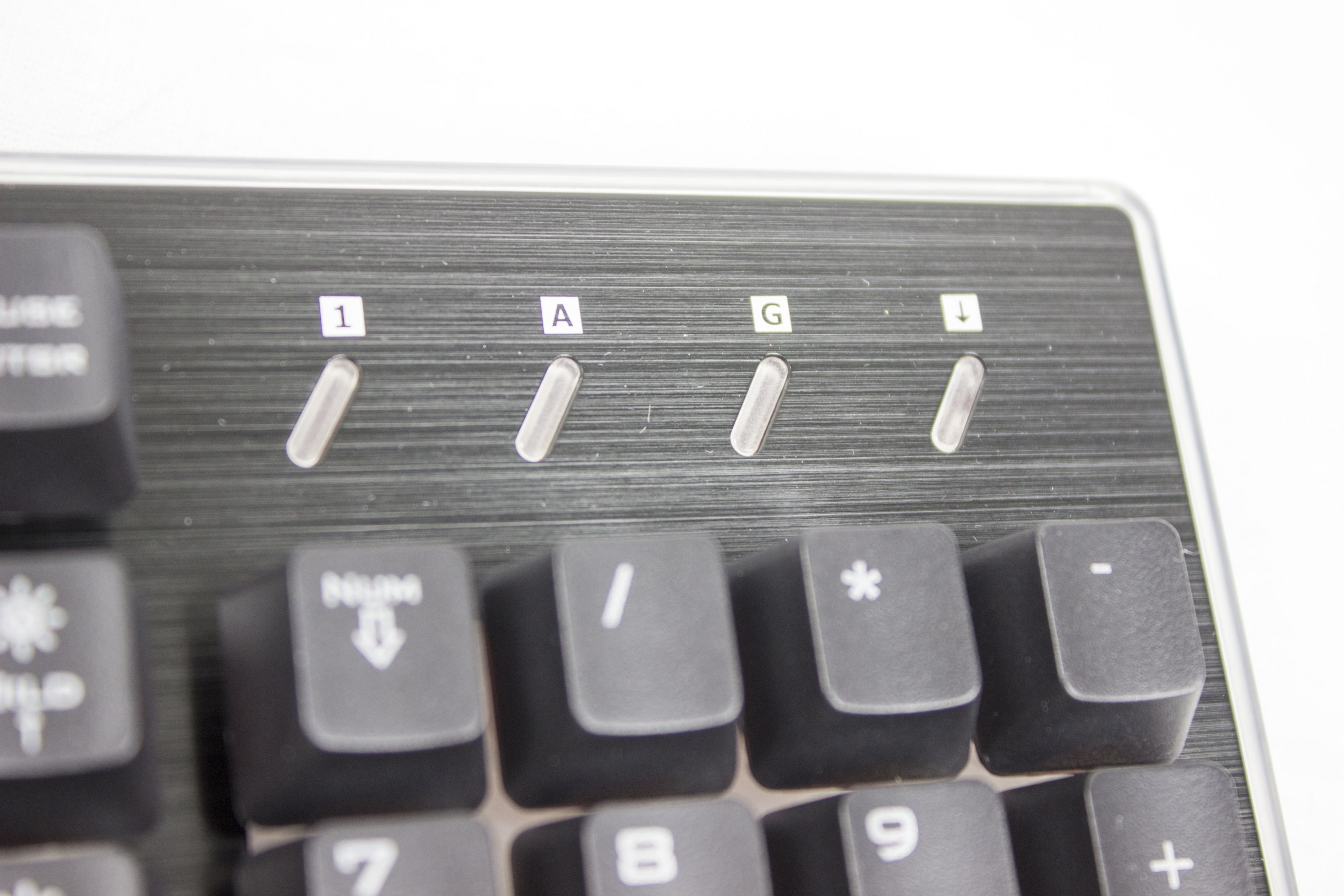Direkt beim Auspacken der Tastatur bemerkt man das hohe Gewicht und die edel wirkende Oberfläche. Diese ist tatsächlich aus gebürstetem Metall, vermutlich Aluminium. Die Oberfläche fühlt sich sehr hochwertig und gut an, was nicht zuletzt an der Struktur des Metalls liegt. Durch die hohen Tasten bekommt die GXT 860 ein außergewöhnliches Design. Sie lassen sich durch die Höhe außerdem leicht reinigen.