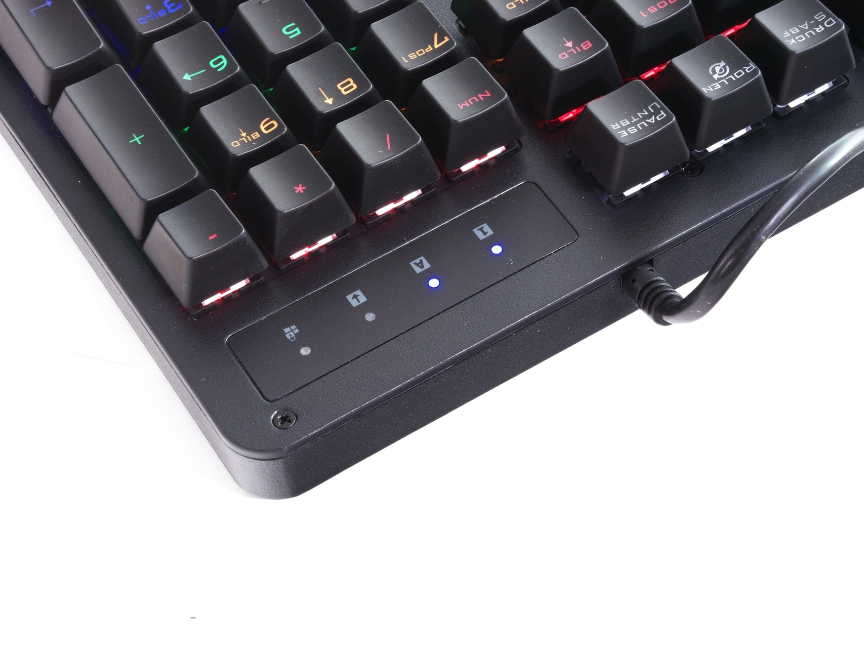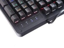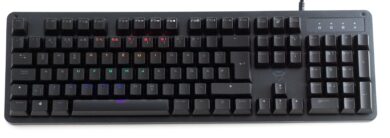 Während die Tastatur also eine (fixe) mehrfarbige Beleuchtung bietet, entspricht ihre Flexibilität nur der von einfarbigen LEDs. Mehr wäre im Preisbereich der Tastatur aber auch wirklich nicht zu erwarten gewesen. Mit Hinblick auf die übrigen Eigenschaften der Beleuchtung stimmt zudem alles: Die Ansteuerungselektronik ist geräuschfrei und die Helligkeit sowie die Ausleuchtung sind im üblichen Rahmen.