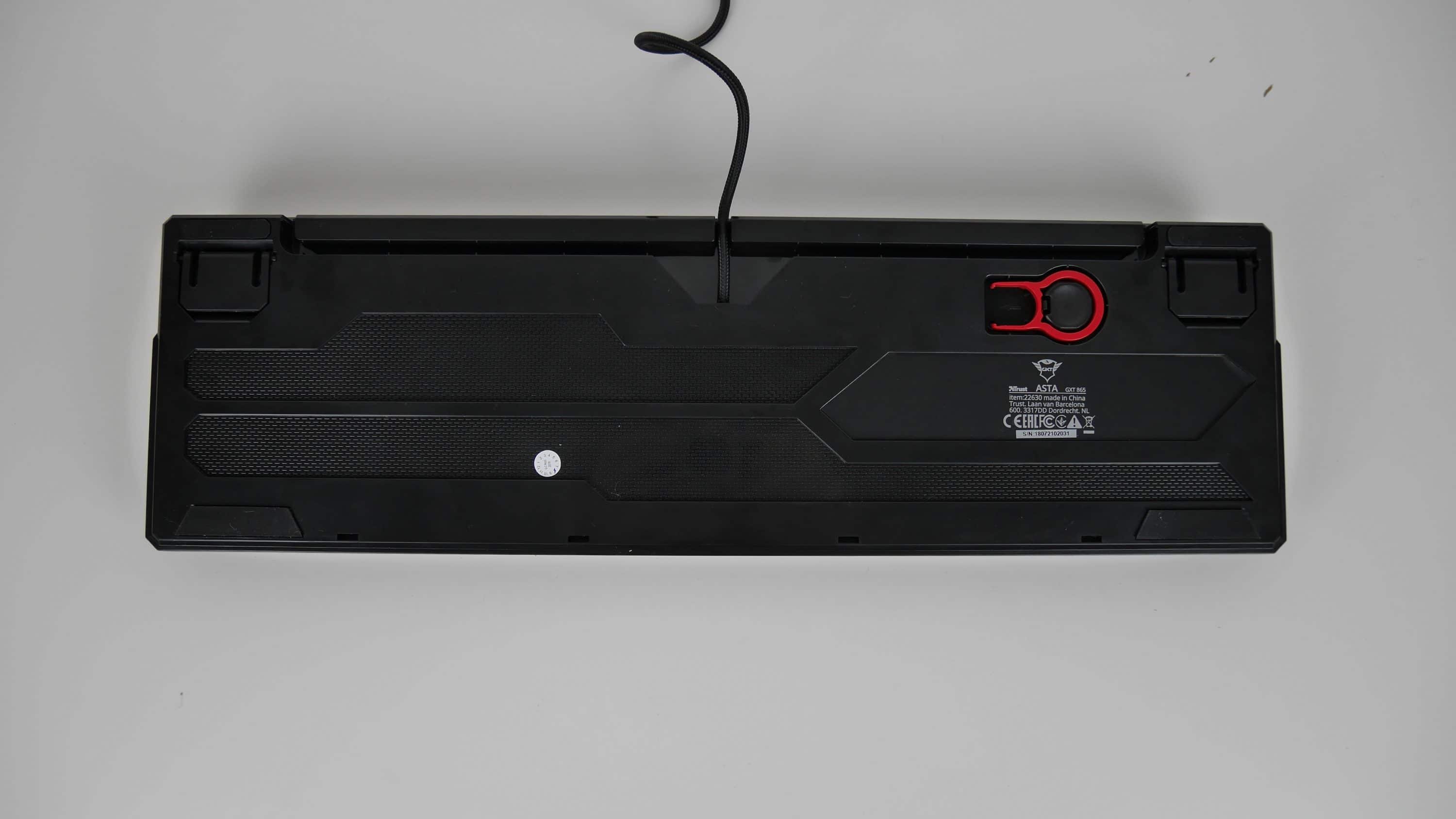 Ebenfalls positiv anzumerken ist die gute Verarbeitung des Kabels, das eine hochwertige Ummantelung besitzt, die Kabelbrüche verhindert. Auf der Unterseite der Tastatur findet man außerdem große Gummifüße, die Verrutschen wirksam verhindern. Ebenfalls vorhanden ist ein Kabelkanal, der für Ordnung auf dem Schreibtisch sorgt und eine Halterung für den Tastenkappenabzieher, der das Verlieren verhindert. Dass Trust trotz des günstigen Preises Wert auf Qualität legt, zeigt auch die zusätzliche Kappe am USB-Stecker des Kabels, der beim Transport dafür sorgt, dass sich dort kein Dreck ansammelt. Selbst weit teurere Tastaturen besitzen diese kleinen „Gadgets“ oft nicht.