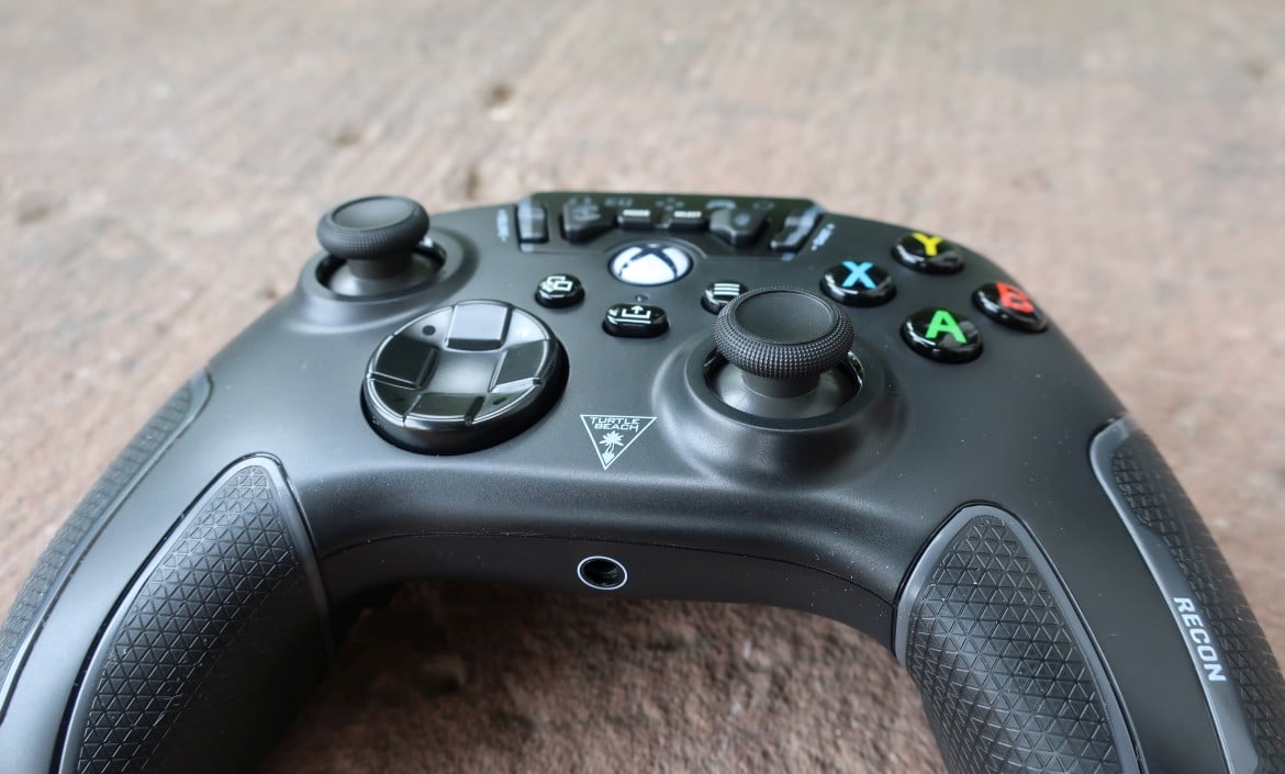 Beim Design orientiert sich der Recon Controller von Turtle Beach auf den ersten Blick stark an Microsofts Original-Gamepad für die Xbox Series X/S. Die grundlegende Anordnung von Buttons, Triggern und den asymmetrischen Sticks ist dieselbe. Auch der 3,5-mm-Audioanschluss für Stereo-Ausgang und Mikrofoneingang an der Unterseite des Gamepads bleibt erhalten.
