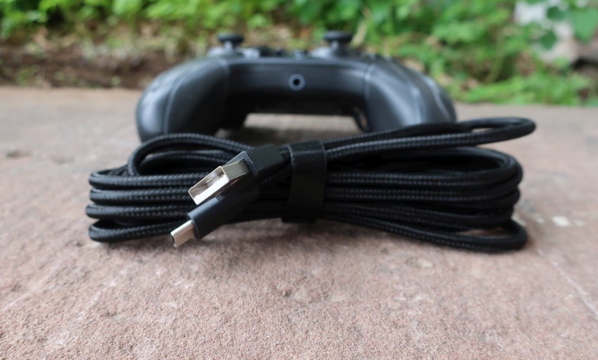 Alles in allem wirkt die Verarbeitung des Gamepads durchaus wertig, wenngleich das Gewicht (aufgrund der fehlenden Akku-Einheit) erschreckend gering ausfällt. Immerhin ist das beiliegende, abnehmbare Kabel Pflicht, um den Recon Controller nutzen zu können.
