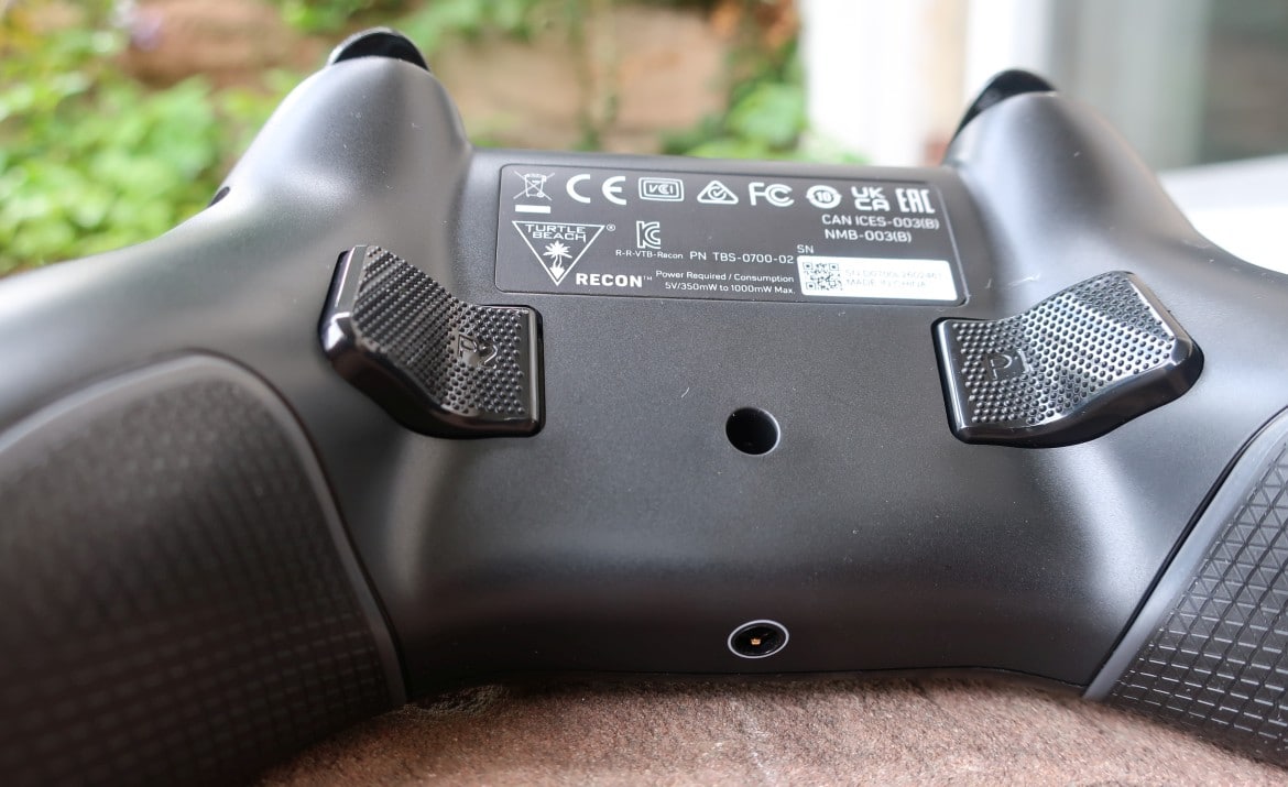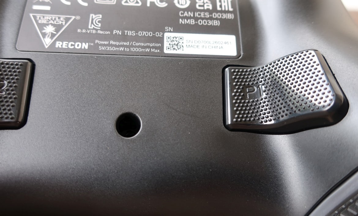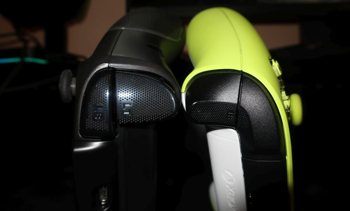 Die Griffhörner des Recon Controllers sind zudem an der Innen- und Außenseite mit rutschfesten Materialien versehen, um für sicheren Halt zu sorgen. Gleichzeitig weisen Bumper, Trigger und rückseitige Tasten eine spürbare, genoppte Oberfläche auf. Das sorgt im Spielbetrieb tatsächlich für etwas mehr Grip im Vergleich zum Original-Controller.