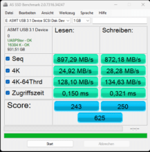 Des Weiteren haben wir mit unserer externen Festplatte bzw. dem AS SSD Benchmark und mit einem DSL-Speedtest getestet, ob es zu spürbaren Performance-Einbußen im Bereich USB und Ethernet kommt. Das Ergebnis zeigt auf, dass sich die Messwerte kaum voneinander unterscheiden und deshalb nicht mit einer Reduzierung der Geschwindigkeiten bei Verwendung der Dockingstation zu rechnen ist.