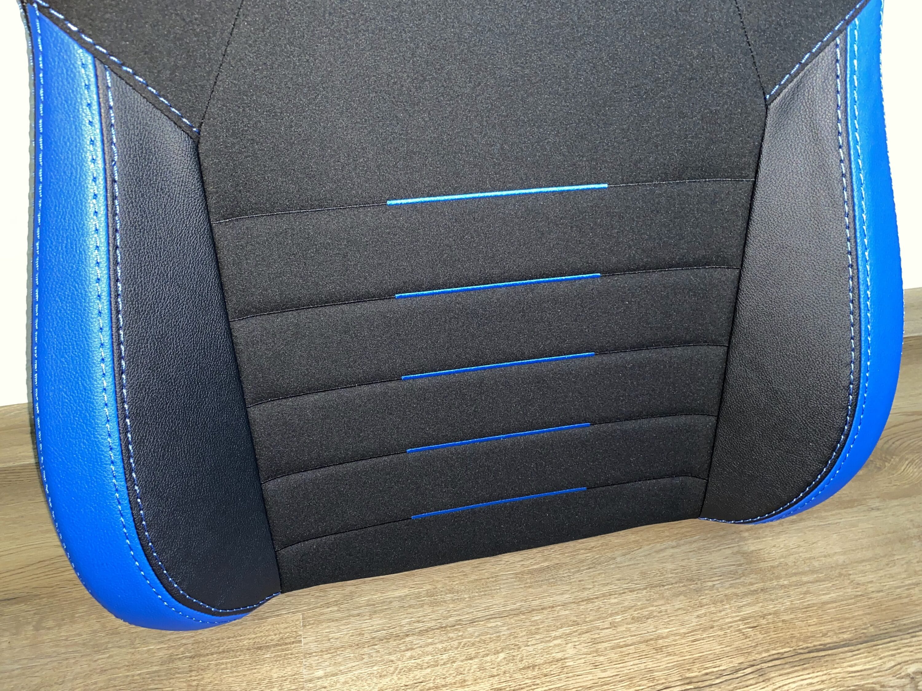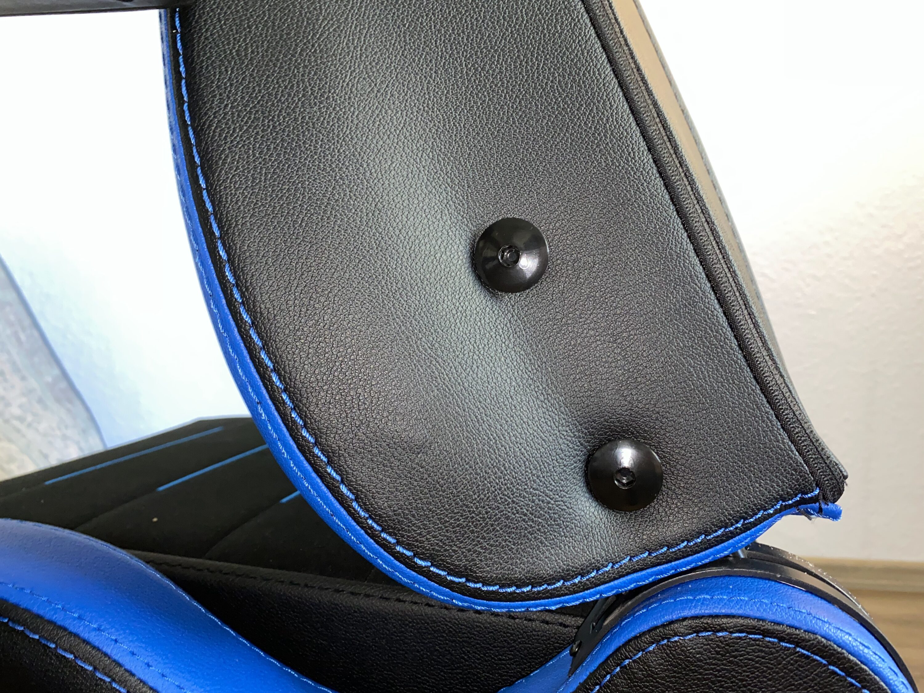 Es ist soweit, der PL4500 ist ausgepackt und vollständig aufgebaut. Nach einer ersten Inspektion der Materialien und der Nähte ließen sich an unseren Stuhl keine Unstimmigkeiten feststellen. Die Nähte sind sauber und geschlossen, es stehen keine losen Fäden ab. Die verarbeiteten Materialien gehen flüssig ineinander über und machen optisch einen edlen Eindruck. Beim Kunstleder wurde sich für eine Mischung aus PVC- und PU-Kunstleder entschieden. Das sogenannte PUC vereint die Haltbarkeit vom PVC mit der Weichheit des PU-Kunstleders und soll dabei pflegeleicht sein. Wie sich das Material in der Langzeit schlägt, ließ sich in unserm Testzeitraum noch nicht feststellen. Fakt ist aber, dass sich das Kunstleder gut anfühlt und auch beim Kratzen oder Ziehen nichts anmerken lässt.