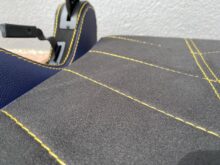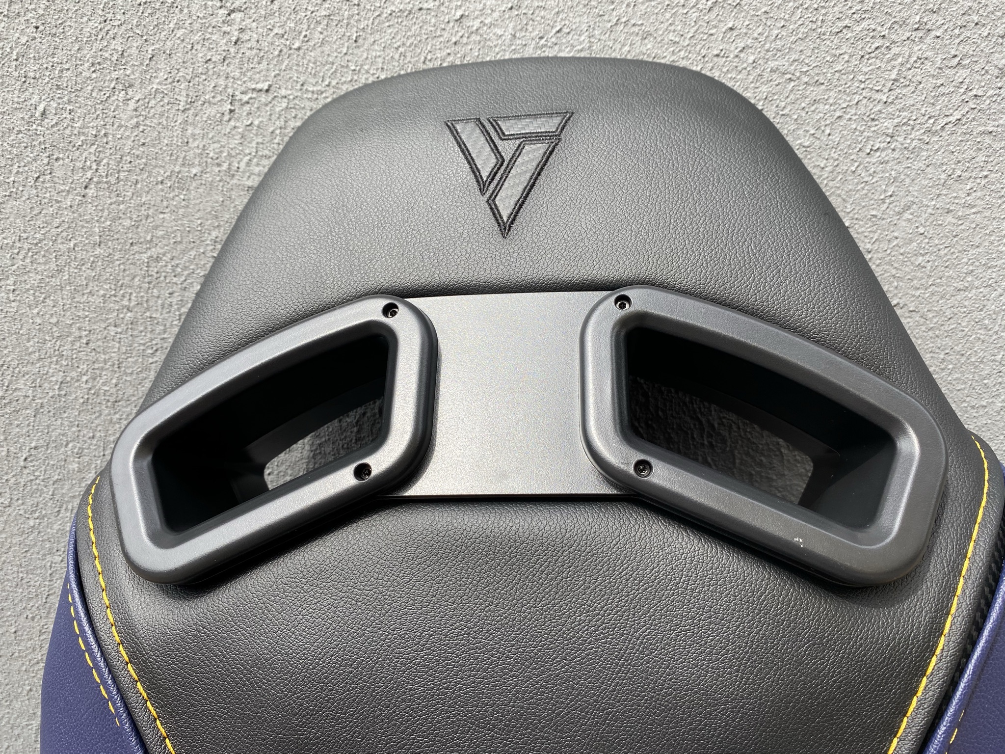 Nachdem der Aufbau also erfolgreich abgeschlossen worden ist, können wir uns das Design mit der eingehenden Verarbeitung anschauen. Dazu fangen wir als Erstes bei der Rückenlehne an – Von oben bis unten konnten wir hier keine Mängel an der Qualität der Verarbeitung feststellen. Keine der Nähte ist locker, sodass das PUC-Kunstleder perfekt ineinander abschließt. Der Stoff fühlt sich sehr geschmeidig an der Haut an und übermittelt so ein angenehmes Gefühl. In Kombination mit dem Kunstleder entsteht eine hochwertige Optik am gesamten Stuhl, welche uns besonders überzeugt. Den einzigen nicht ganz perfekter Punkt finden wir an der Seite, besser gesagt an den Schrauben wieder. Hier schließen sie nicht vollständig mit dem Leder ab, wodurch eine kleine Kante steht, die jedem Perfektionisten ins Auge fällt. Optional lässt sich die Rückenlehne noch etwas aufhübschen – Mit einem zusätzlich zu kaufenden RGB-Kit können die oberen Löcher zum Leuchten gebracht werden.