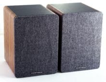 Wavemaster geht mit den Base-Lautsprechern optisch eher in die Retro-Richtung. Dafür sorgt insbesondere die Stoffbespannung, die grob und mit leichten Farbvarianzen gewebt ist. Beim Korpus setzt das Unternehmen auf einen üblichen MDF-Klangkörper, der an den Seiten in Holzoptik ausgeführt ist.