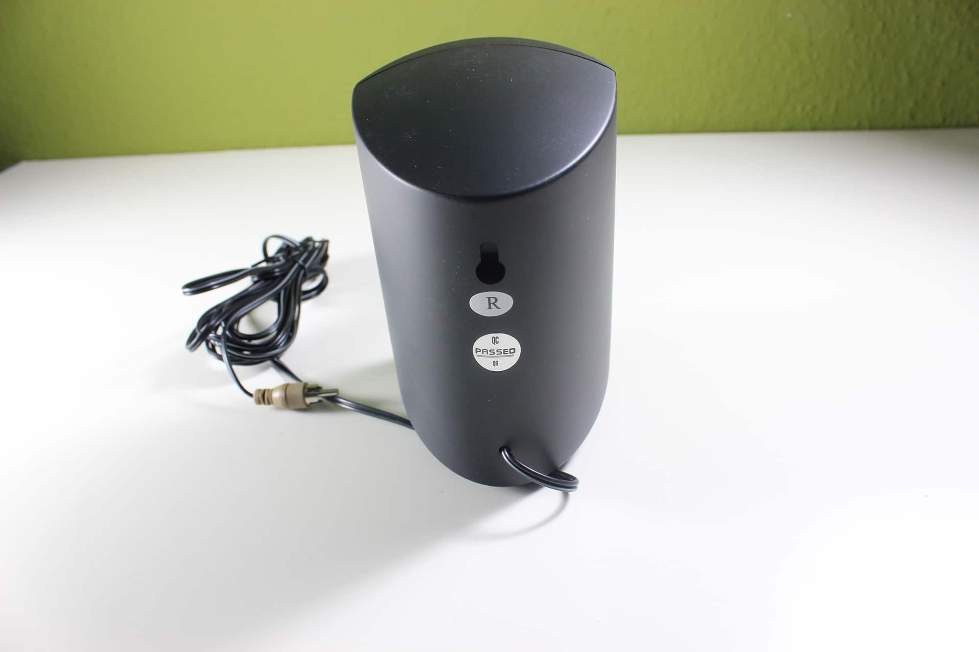 Das Wavemaster Moody BT 2.1 ist sehr dezent in schwarz gehalten und passt somit überall. Leider bestehen die Satelliten nur aus Kunststoff und nicht aus Holz. Zwar gibt es Alternativen in dieser Preisklasse um 100 Euro, allerdings verzichten diese dafür beispielsweise auf Bluetooth. Dennoch stehen die Satelliten sehr stabil, denn die Gumminoppen sorgen für einen festen Stand. Auch die Aufhängung an einer Wand ist möglich, falls man das möchte. Die Satelliten sind lediglich 90 x 145 x 103 mm groß und stören somit kaum auf dem Schreibtisch. Ein wenig an der Optik lässt sich an den Satelliten rumspielen, denn die schwarze Frontabdeckung lässt sich einfach abnehmen.