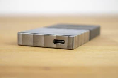 Angeschlossen wird die externe SSD über den kompakten USB-C-Anschluss. Mit diesem wird sichergestellt, dass die SSD auch mit neuesten Notebooks, PCs und Smartphones verwendet werden kann. Mit älteren Rechnern lässt sie sich auf diesem Wege leider nicht verbinden, hierzu wird aber auch ein USB-A-Adapter mitgeliefert.