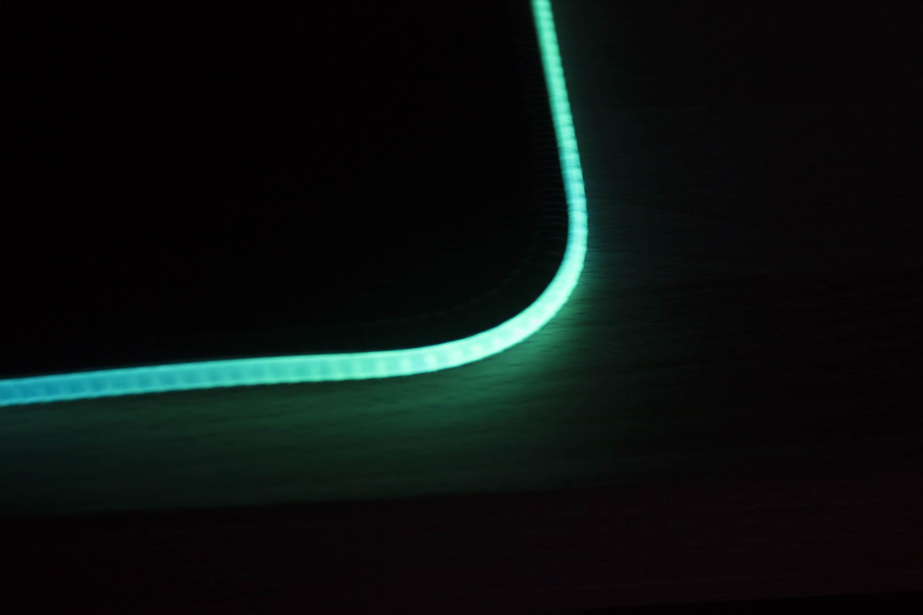 Etwas Kritik muss das Mauspad aber bei der Beleuchtung einstecken. Wird sie einfarbig eingestellt ist die Beleuchtung gleichmäßig, bei zwei Farben ist sie dann aber je nach Farbe schon recht ungleichmäßig.