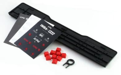 Neben der Tastatur selbst legt XPG noch diverses Zubehör bei. Eine magnetische Handballenauflage, ein Tastenentferner und rote Ersatztastenkappen für WASD, die Pfeiltasten und die Windows-Taste sind enthalten. Zudem gibt es eine Anleitung und diverse XPG-Aufkleber.