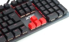 Unser Testmuster setzt auf die Cherry MX Speed RGB Silver Switches, die bereits nach 1,2 Millimetern auslösen. Die Beleuchtung erfolgt dabei durch eine innen verbaute LED, die durch das transparente Kunststoffgehäuse zu sehen ist. Bei den Stabilisatoren für große Tasten setzt XPG auf die Cherry-Variante.