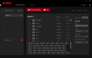Natürlich bietet XPG für die Summoner auch eine Software an, mit der die Konfiguration übernommen werden kann. Diese heißt Prime und wird derzeit als Beta vertrieben. Das Programm ist schnell installiert und verfügt über ein modernes UI. Über dieses können diverse vorgefertigte Beleuchtungseffekte ausgewählt, Tastenbelegungen angepasst und Makros erstellt sowie konfiguriert werden. Die Makros dürfen dabei maximal 64 Aktionen, also 32 Tasteneingaben enthalten.