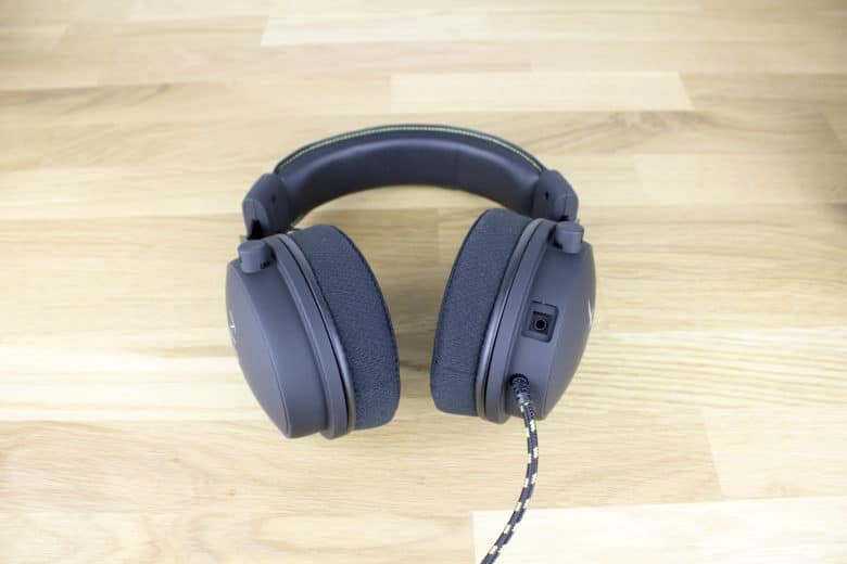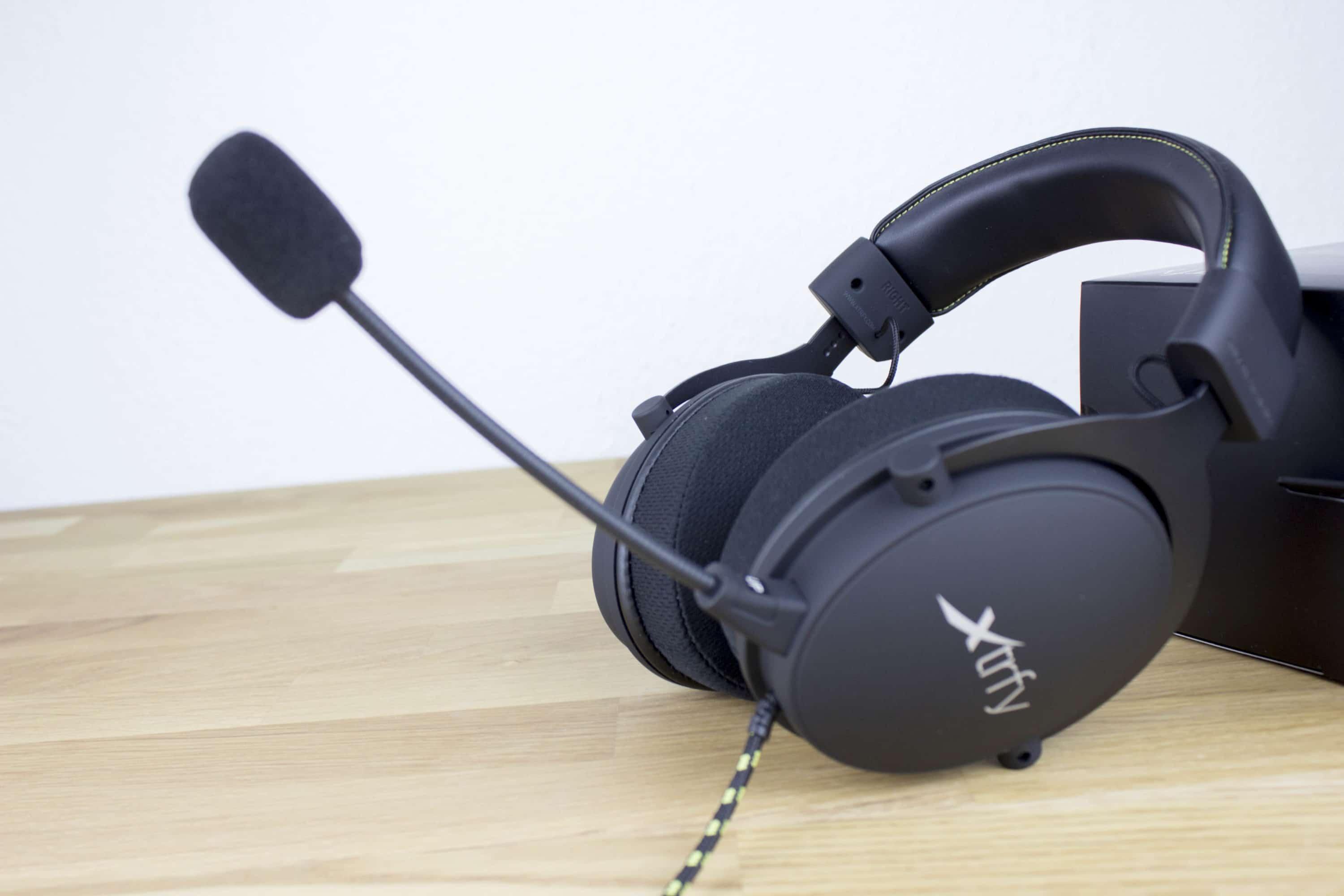 Das H2 kommt in schlichtem Schwarz auf den Markt, andere Farben stehen nicht zur Auswahl. Auf beiden Ohrmuscheln prangert der recht große Schriftzug des Hersteller Xtrfy. Recht markant sind auch die ovalen Ohrmuscheln mit ihren Halterungen.