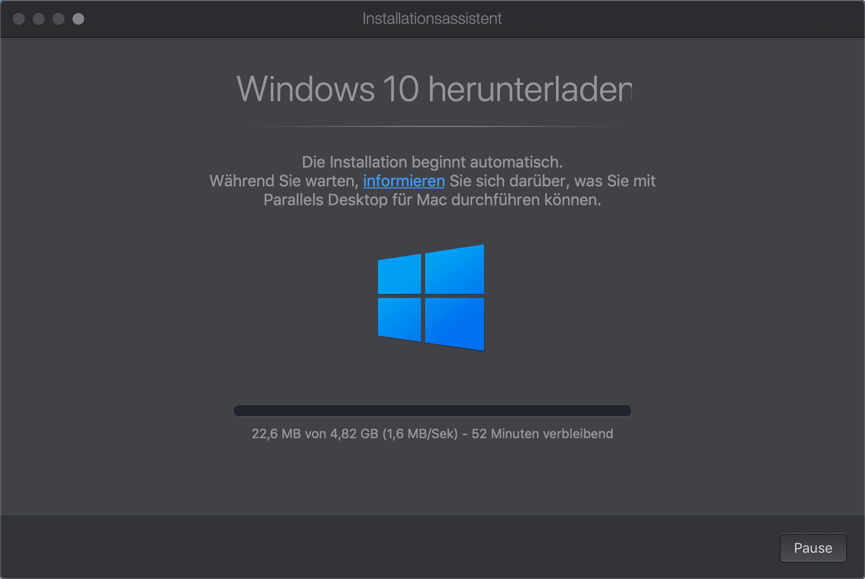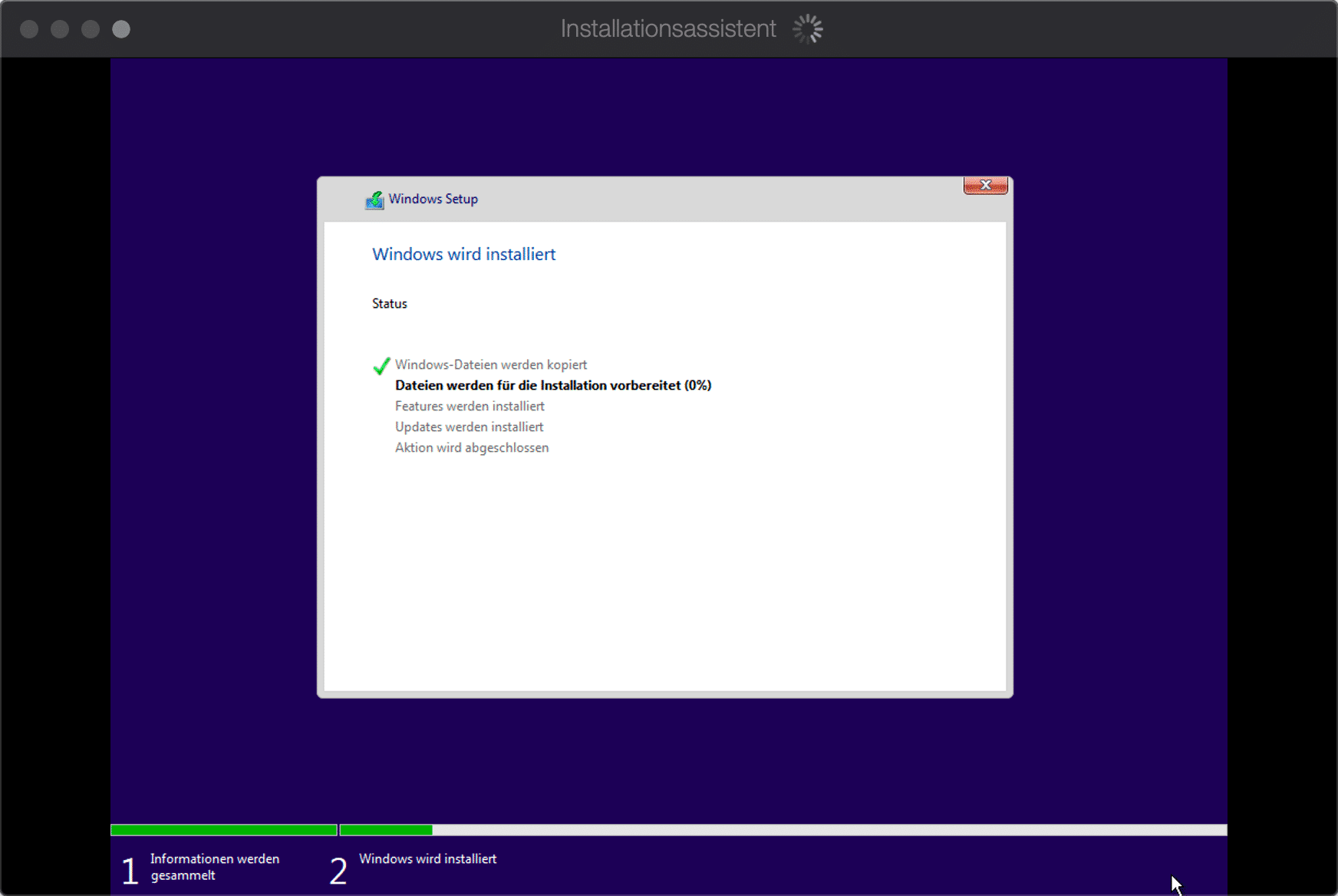 Parallels Desktop 14 für Mac OS – Fortschritt