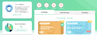 Außerdem bietet das Portal neben den üblichen Tests noch Umfragen als zweite Option zum Geldverdienen an.