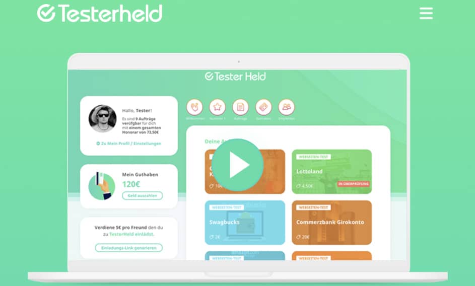 Bei Testerheld.de sollen Nutzer als „bezahlte Online-Tester“ Geld verdienen können. Möglich sind laut der Homepage 30 Euro durch erste Jobs direkt nach der Registrierung. Die Auszahlung per PayPal oder Überweisung erfolgt laut Testerheld.de innerhalb von 24 Stunden.