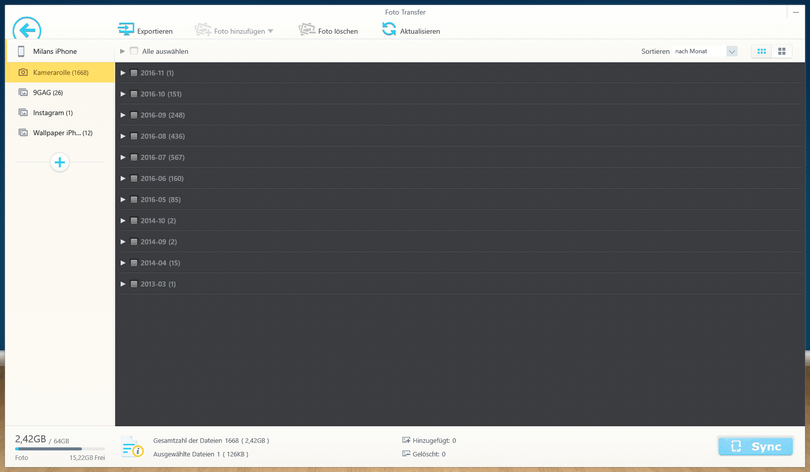 So ganz einwandfrei funktioniert das leider nicht. Grundsätzlich tut das Programm genau das, was es verspricht. Es können Musik, Bilder, Videos, Podcasts, Klingeltöne und eBooks übertragen werden. Eine Zusatzfunktion ist, das iPhone als USB-Stick verwenden zu können. Und so beliebige Daten transportieren zu können. Die Musik auf meinem Handy kann das Programm jedoch leider nicht anzeigen, lediglich die Playlisten ohne ihren Inhalt. Videos wiederum findet es nur teilweise. Fotos werden vollständig und in Alben unterteilt aufgelistet. Ebooks werden aufgelistet, jedoch nicht wenn sie als PDF gespeichert sind, obwohl MediaTrans PDF als Kategorie anbietet.