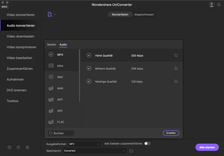 Doch es lassen sich nicht nur Videos konvertieren. Auch bei Audio-Dateien oder gemischten Dateien ist dies kein Problem. So kann man beispielsweise auch MP4 to MP3 und M4A to MP3 konvertieren.