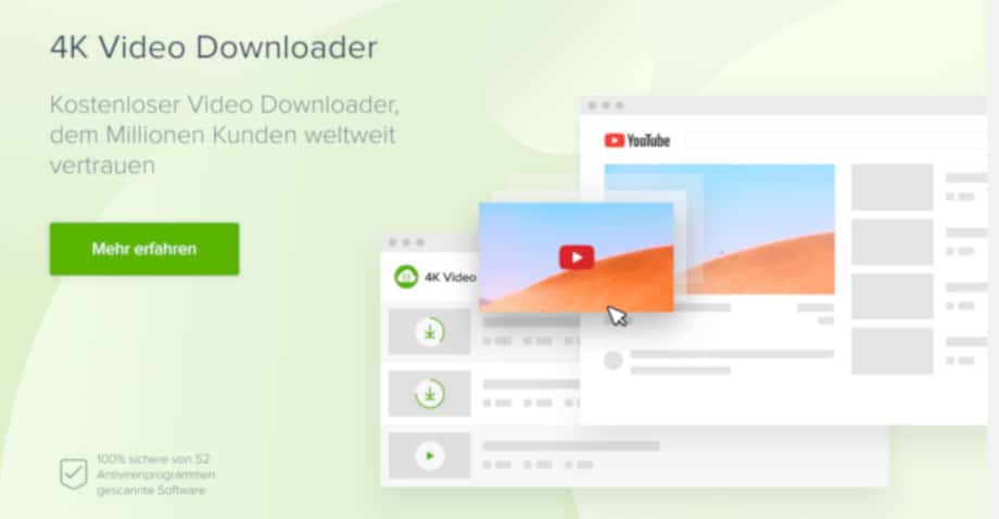 Zum Download eines YouTube Videos muss lediglich die Software gestartet werden. Sobald im Browser die Adresse eines Videos in die Zwischenablage kopiert wird, erscheint im 4K Video Downloader automatisch beim grünen „Link einfügen“ Button eine rote Markierung, deren Klick ein Untermenü öffnet. Nutzer können dort auswählen, ob sie lediglich die Audiospur herunterladen möchten oder ob das gesamte Video gespeichert werden soll. Außerdem können die Auflösung sowie das Format frei bestimmt werden und bei Bedarf lassen sich auch Untertitel herunterladen.