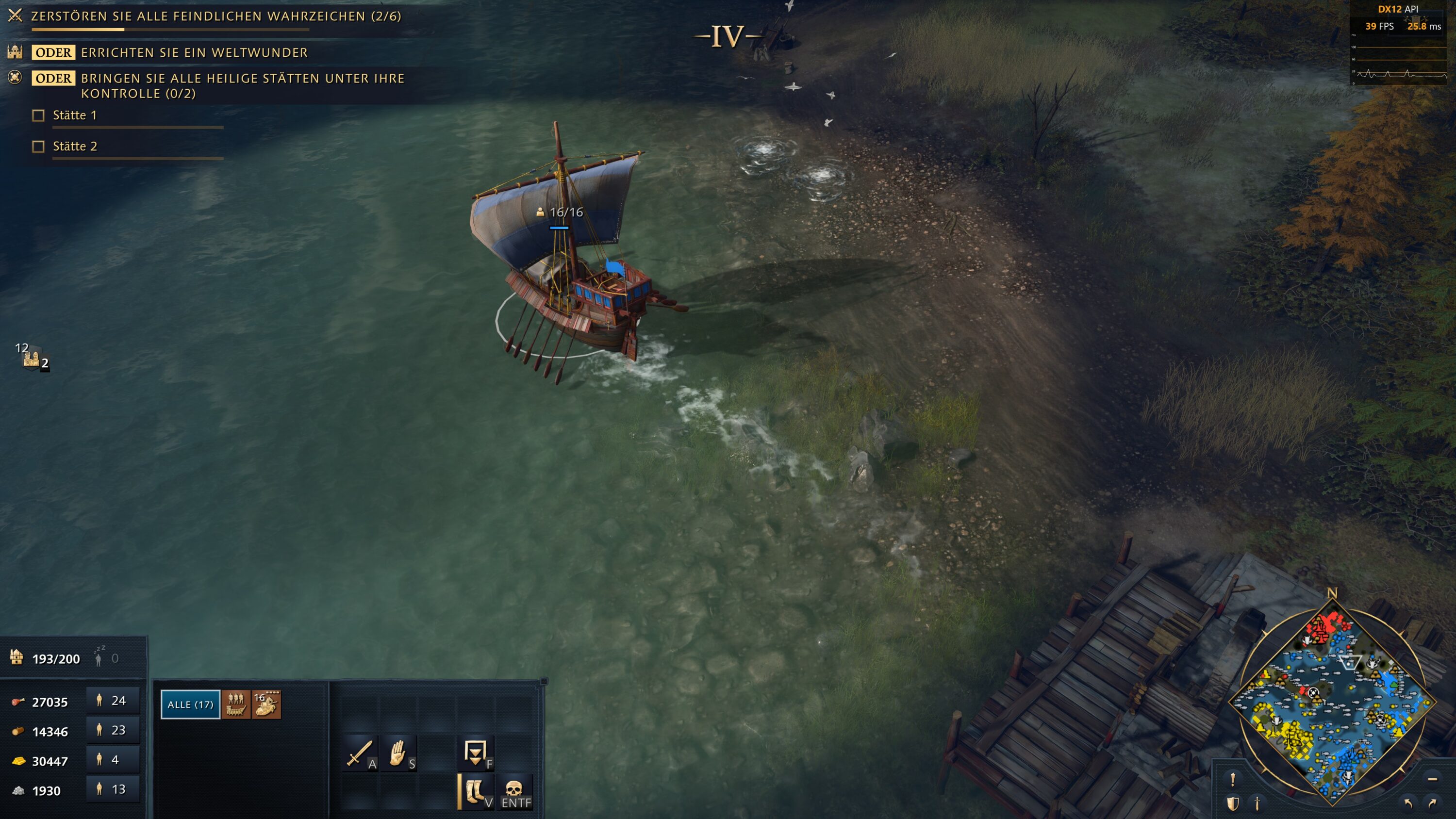 In der Praxis können wir den moderaten Leistungsbedarf von Age of Empires 4 bestätigen. Zufällig war zum Testzeitpunkt ohnehin ein Thinkpad X260 in Reichweite, das exakt den von Microsoft angegeben Mindestanforderungen entspricht: Ein Core i5-6300U, keine externe GPU und 8 GB Arbeitsspeicher. In dieser Konfiguration haben wir testweise mit niedrigsten Details und halber 1080p-Auflösung ein 1v1-Gefecht ausprobiert, und hatten dabei spielbare Bildraten im Bereich zwischen 35 und 40 fps. Gut sieht das Spiel in dieser Konfiguration aber nicht mehr aus: Etwas mehr Leistung als das Minimum wäre dann doch wünschenswert.