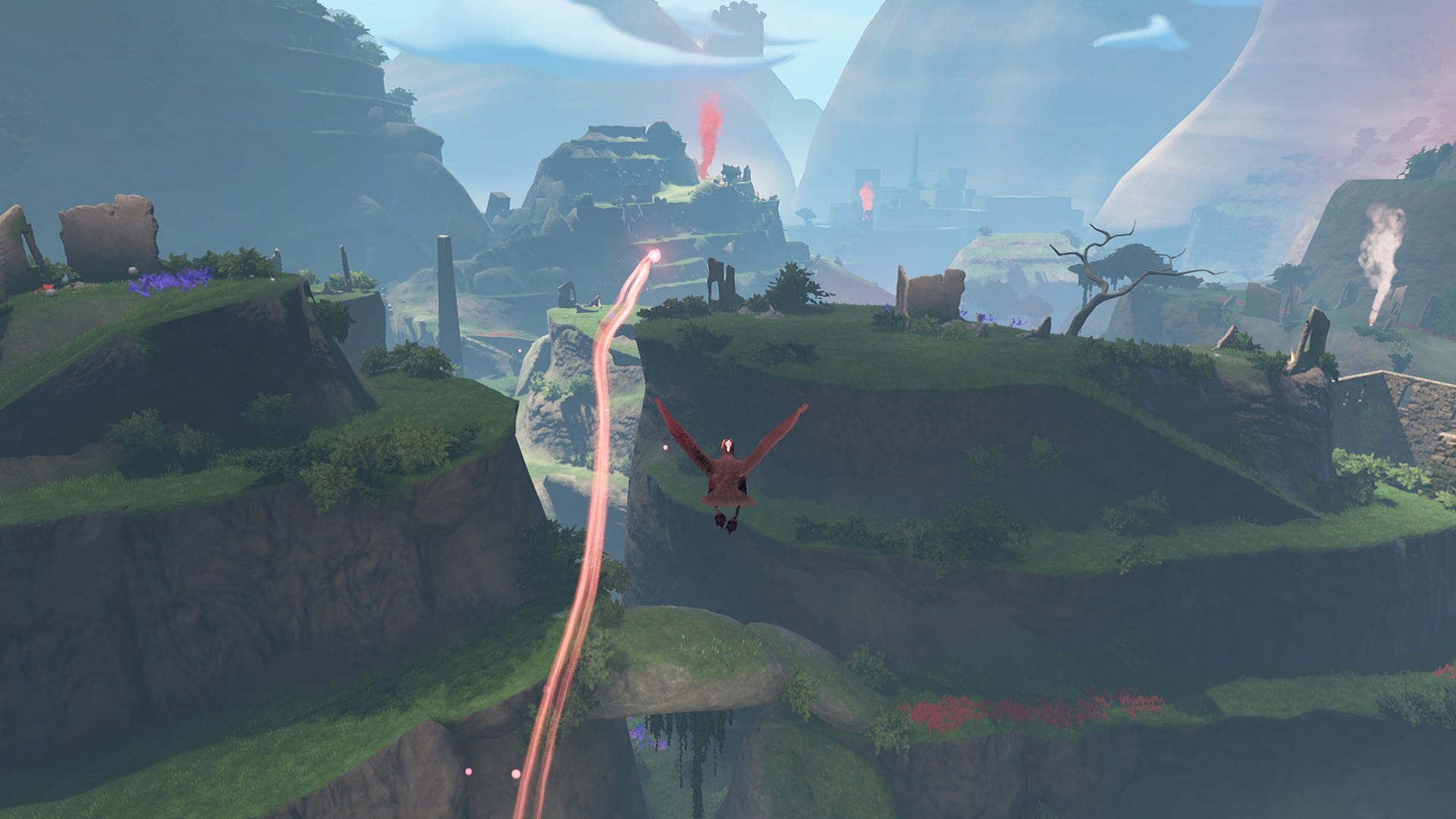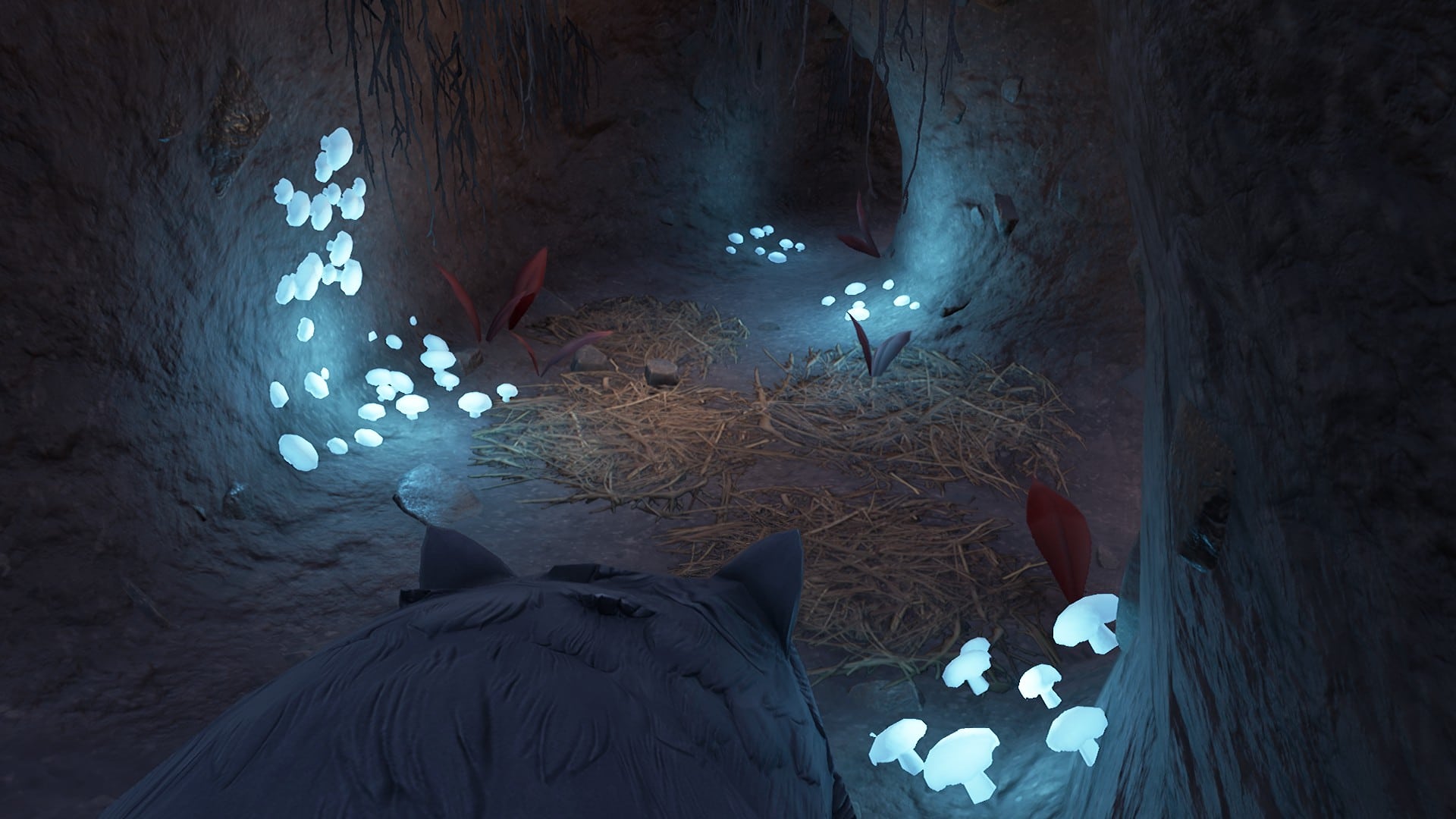Insgesamt ist der Weg von einer Erinnerung zur nächsten jedoch recht linear. Das ist tatsächlich etwas schade, denn es macht einfach Spaß herumzulaufen, zu fliegen oder zu schwimmen, sodass man sich an der ein oder anderen Stelle doch lieber noch etwas weiter herumlaufen möchte, anstatt zum nächsten Ziel weiterzugehen. Es gibt allerdings auch einige weitläufigere Areale und gelegentlich versteckte Pfade oder Abzweigungen. Wer sich ausführlich umschaut kann verschiedene Sammelobjekte finden. Diese sind rein optional und verraten einige Details über die Welt. Außerdem haben sich die Entwickler viele liebevolle Kleinigkeiten einfallen lassen. Einige Tiere haben besondere Aktionen, beispielsweise könnt ihr als Wombat Beeren mümmeln. Das ist für das Vorankommen nicht relevant, aber es ist niedlich und lässt die Interaktion mit den Tieren lebendiger erscheinen.