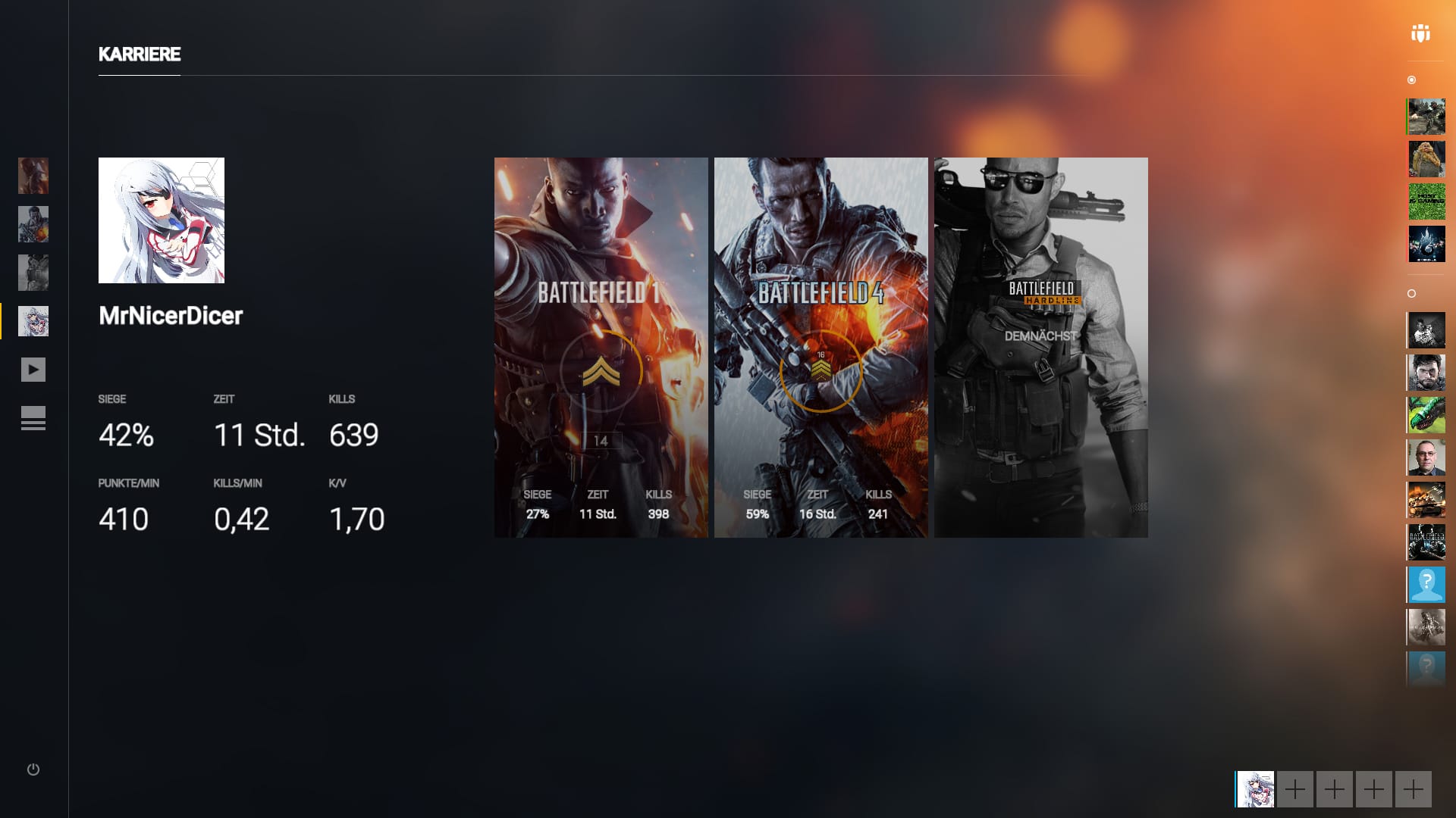 Da nun der Battlelog für Battlefield 1 und Battlefield 4 Geschichte ist, kann man nun alles über das neue Menü einstellen und ändern. Man hat Einblick in die Karrieren und kann auch ohne Probleme von Battlefield 1 zu Battlefield 4 wechseln, ohne das jeweilige Spiel zu schließen. Der Übergang erfolgt ohne Probleme. Das Ändern des Emblemes erfolgt leider noch nicht im Spiel und muss weiterhin über dem Battlelog geändert werden. Bleibt nur zu hoffen, dass es auch bald im Spiel möglich ist.