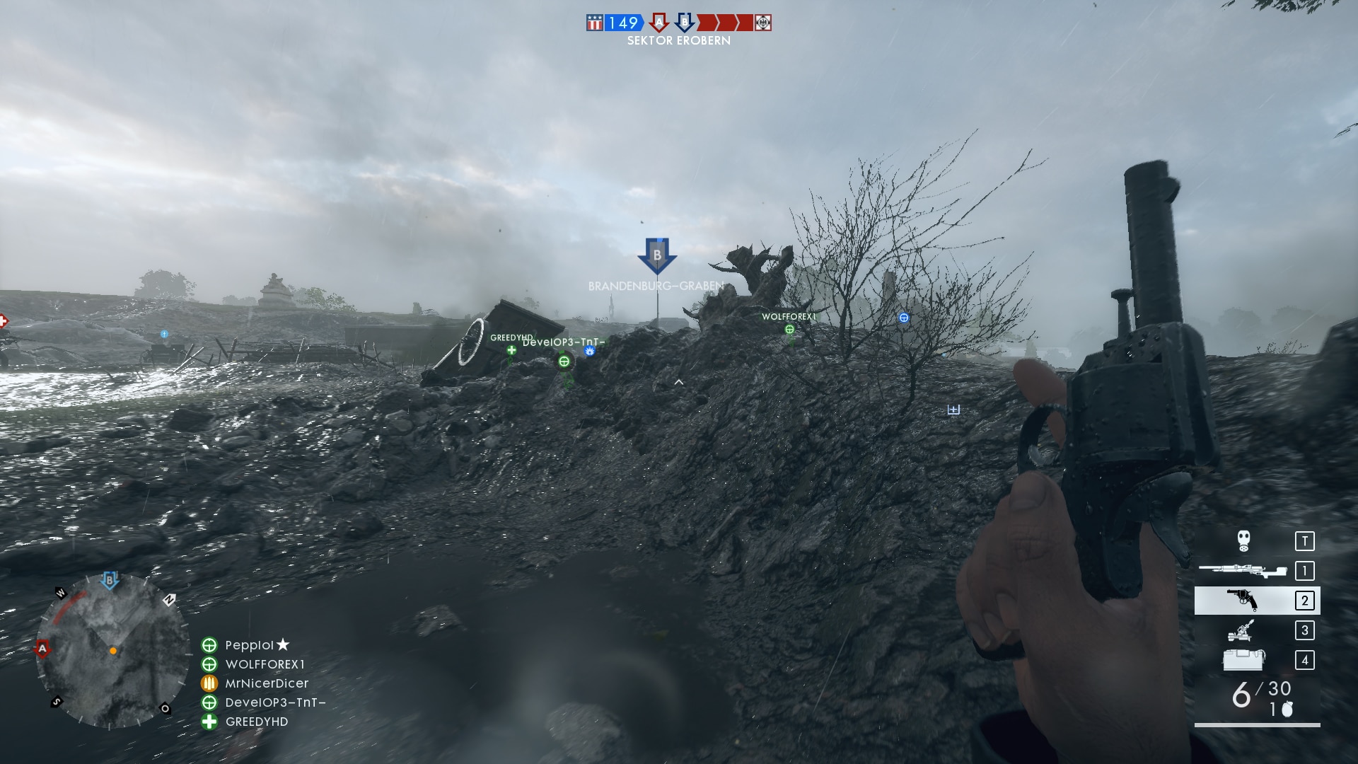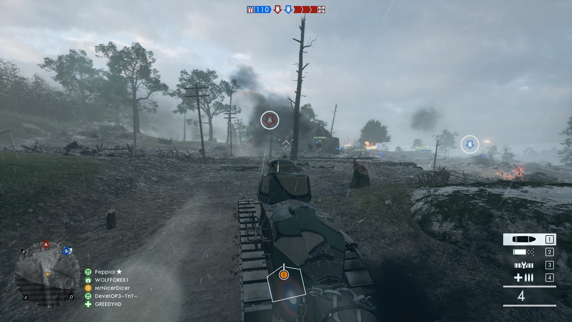 Durch das Erste Weltkrieg-Setting hat sich einiges geändert. Im Kern bleibt es aber immer noch ein Battlefield. Da es im Ersten Weltkrieg nur eine Handvoll automatische Waffen gab, befinden sich fast nur halbautomatische Waffen in Battlefield 1. Lediglich der Versorger hat eine größere Auswahl an automatischen Waffen. Mit den halbautomatische Waffen muss man genauer zielen, um den Gegner zu treffen, dafür sind die halbautomatischen Waffen effektiver. Anders ist es bei den vollautomatischen Waffen. Wer mit einem MG spielt, muss wenig zielen, macht aber dafür weniger Schaden. Die größte Änderung wurde aber am Sniper vorgenommen, da er nun noch besser zielen und die Erdanziehungskraft beachten muss, um einen Gegner zu töten. Dazu gesellt sich auch noch die neue Senfgas-Granate, welche man zwar ganz einfach mit dem Aufsetzen der Gasmaske umgehen kann, dabei fällt aber das Nutzen von Kimme und Korn weg.