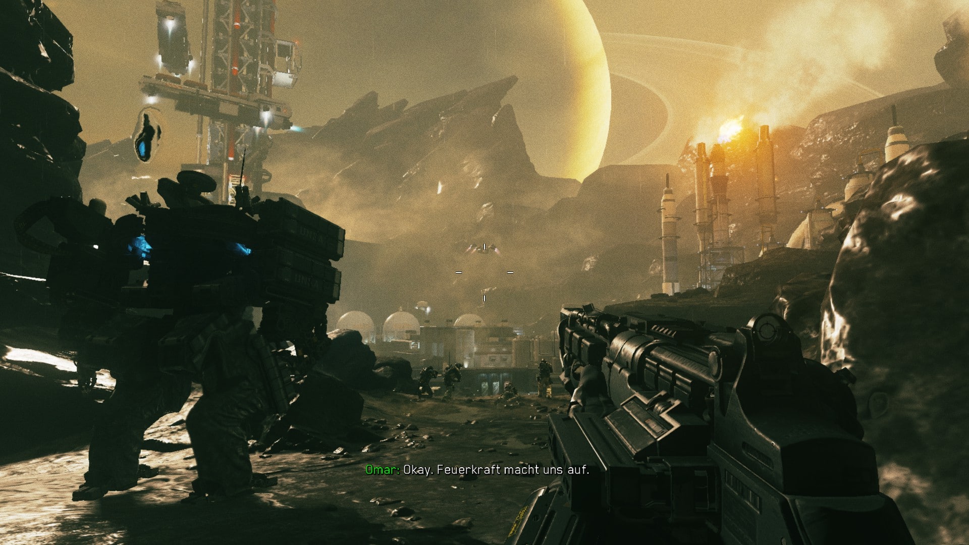 Wer die Kampagne von Call of Duty: Infinite Warfare beginnt, der bekommt einen durchaus wuchtigen, aber nicht mehr unbedingt neuen Einstieg geboten. Man springt als Teil einer kleinen Einsatztruppe aus einem Flieger, saust durch die Luft und landet kurz davor auf einem kargen Eisplaneten. Hier soll eine Stellung der SDF (Settlement Defense Force) ausgehoben werden. Diese hat es sich zum Ziel gesetzt, ihre Vorherrschaft im Weltall zu behaupten und will dafür die UNSA (United Nations Space Alliance) in die Knie zwingen. Die UNSA hat dagegen den Auftrag die Pläne der SDF zu stoppen, um die Leben der Menschen auf der Erde und im All zu schützen.