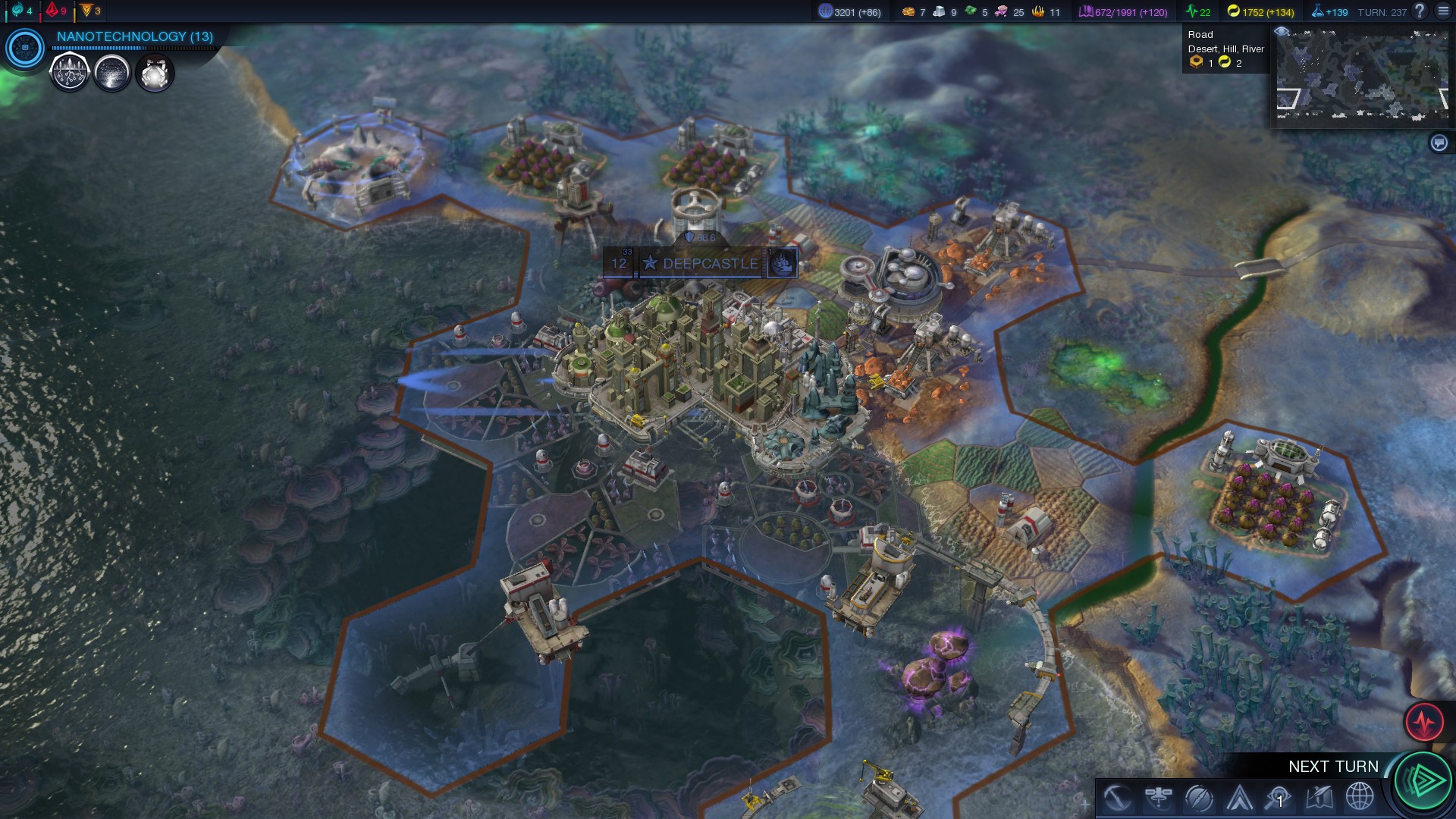 Wo wir gerade beim Thema Krieg und Kämpfen sind. Neben den neuen Marineeinheiten, ein Schiff für den Nahkampf und ein U-Boot, sind nun auch über die Hybrid-Affinitäten Einheiten verfügbar. Diese bekommen andere Werte als wir sie aus Sid Meiers Civilization Beyond Earth und seiner doch sehr linearen Affinitätsausrichtung kennen und sie bekommen ein neues Aussehen, das zu den zwei Affinitäten passt die benötigt werden.