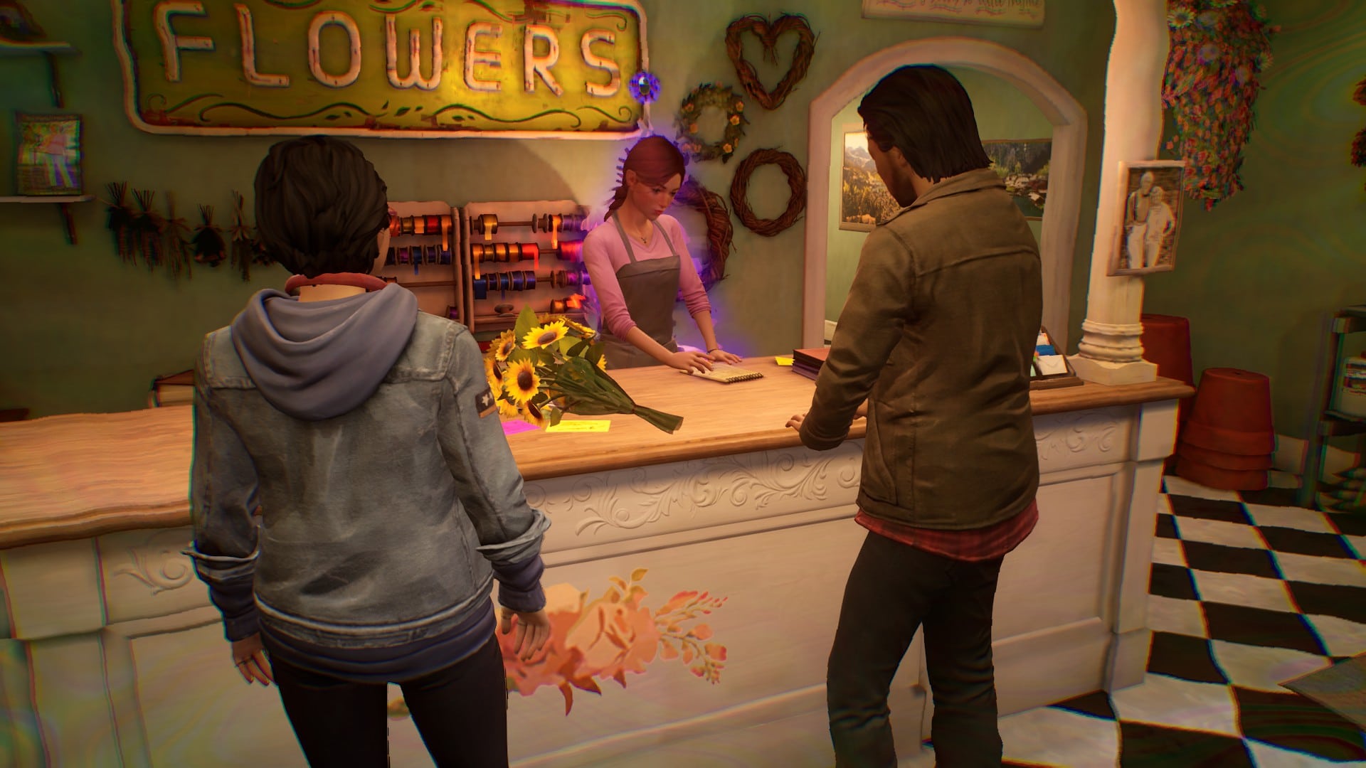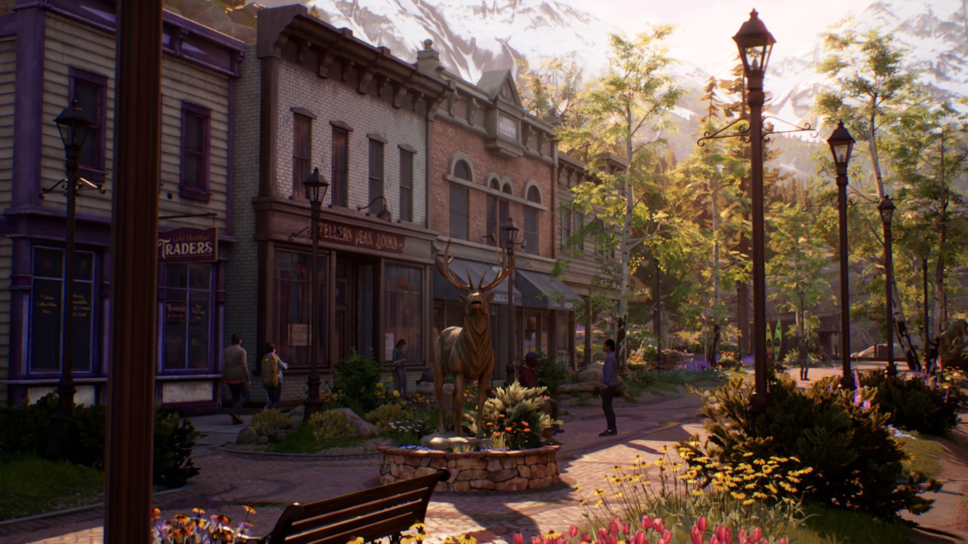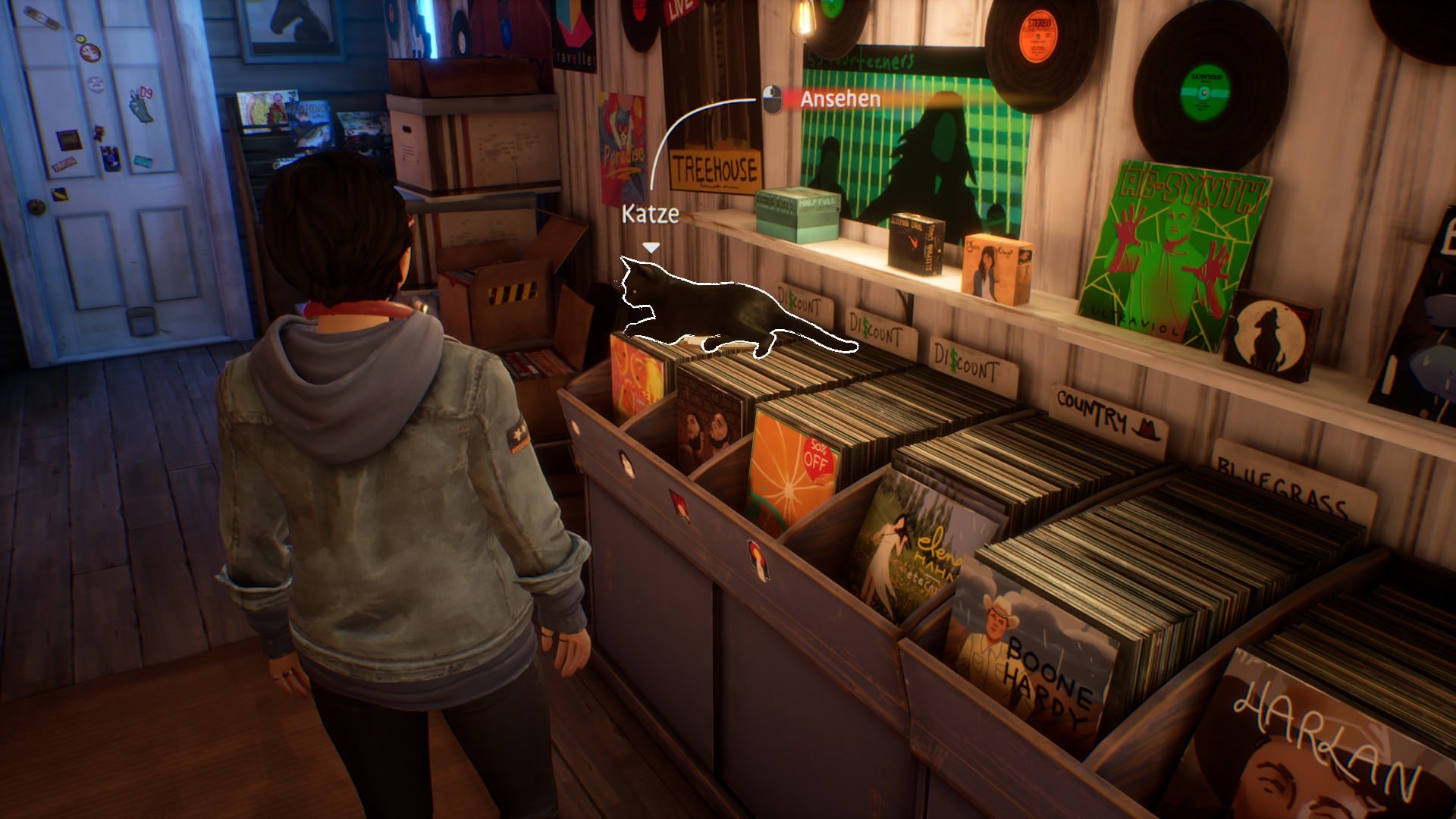 Atmosphärisch steht der dritte Teil keinem anderen der Reihe nach. True Colors wird seinem Namen gerecht und lässt euch eine wunderschöne, farbenfrohe Welt erkunden. Grafisch wurde auf kontrastreiche und bunte Farben gesetzt. Haven Springs, der Hauptschauplatz des Spiels, ist eine hübsche und wahnsinnig detailreiche Kleinstadt. Neben den Außenbereichen, die eine tolle Kulisse bieten, gibt es in den verschiedenen Läden, Alex‘ Wohnung etc. viel zu entdecken. Auch beim Soundtrack kann das Spiel auf ganzer Linie überzeugen. Durch Alex‘ musikalisches Interesse kommt man im Spiel gar nicht drum herum den fantastischen Soundtrack zu genießen, der zu der großartigen Atmosphäre des Spiels beiträgt. Sei es die Jukebox im Pub oder wenn Alex‘ im Plattenladen Musik hört.