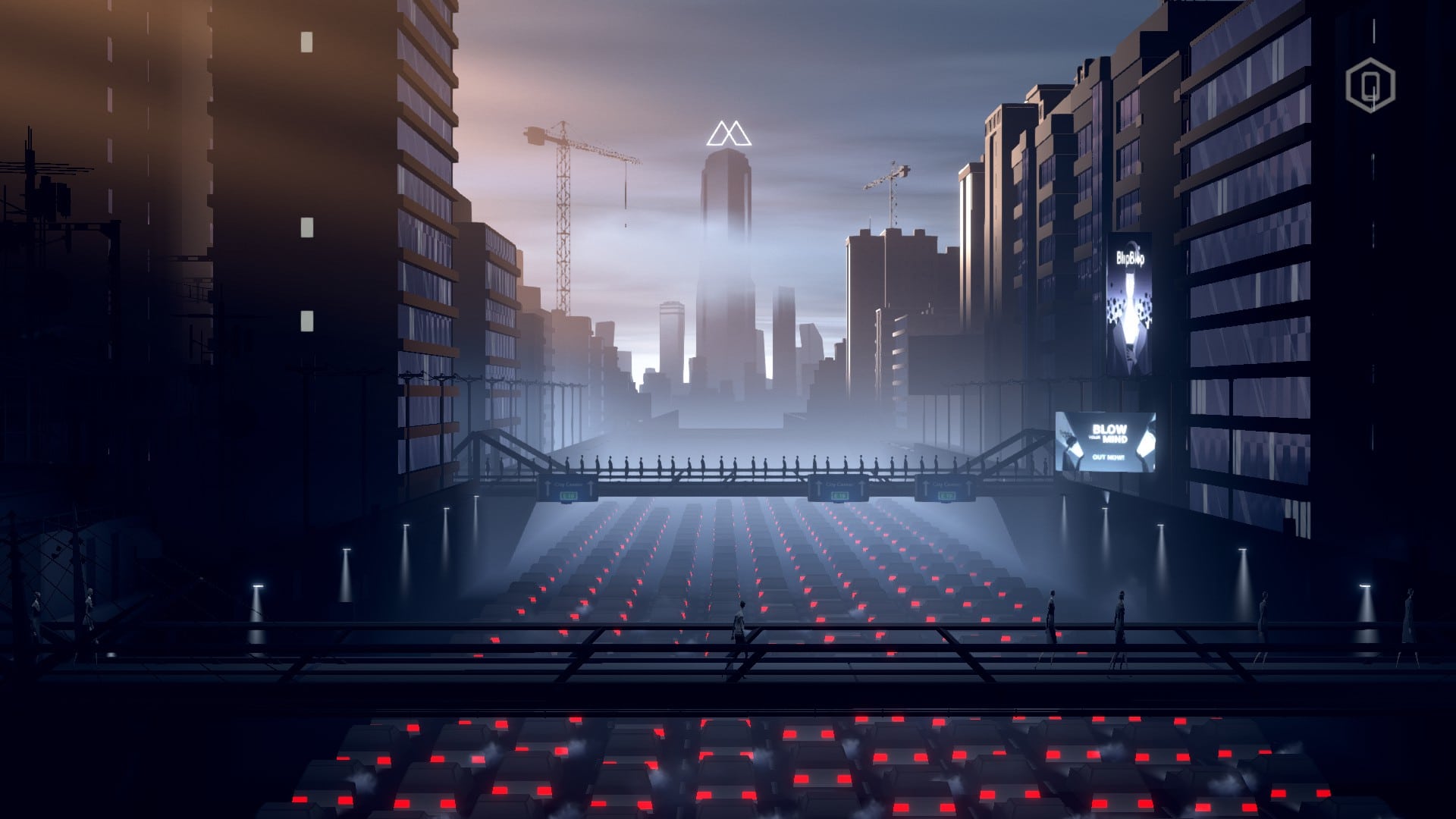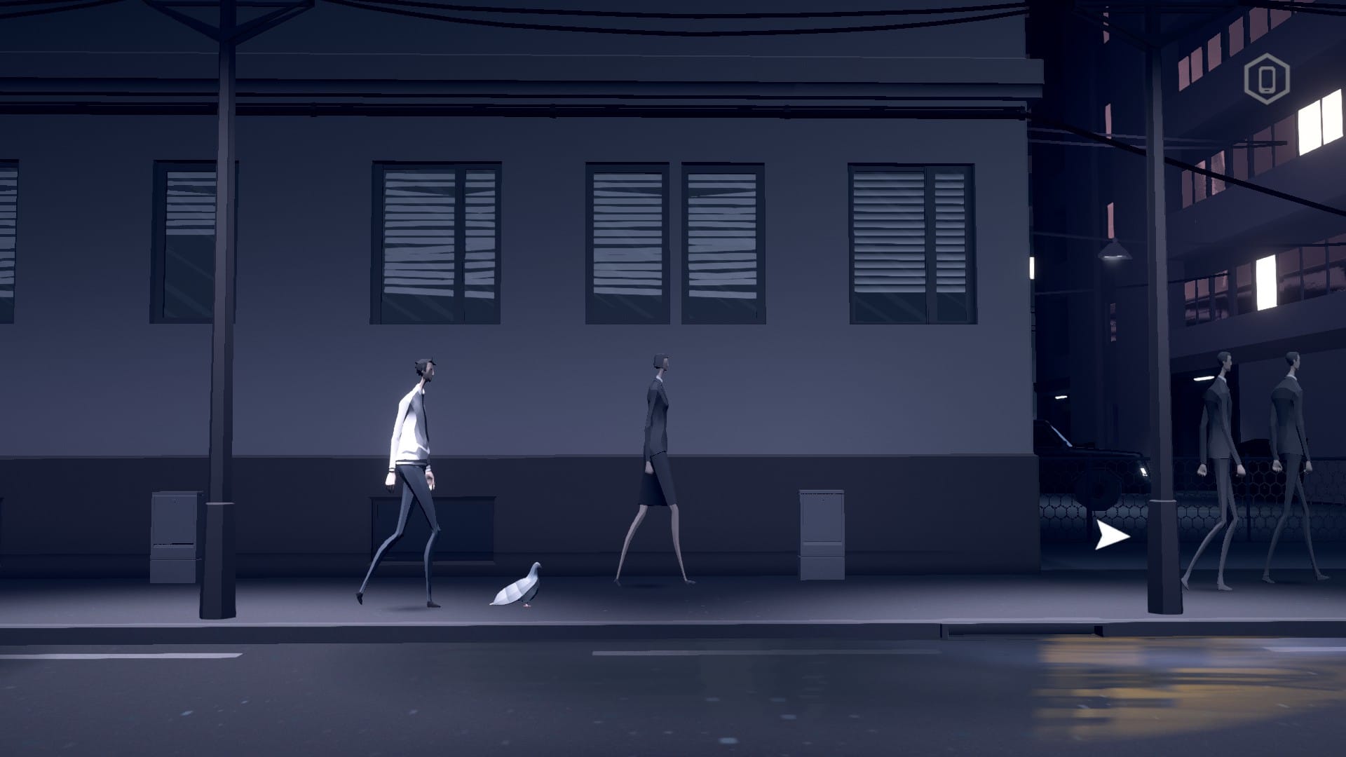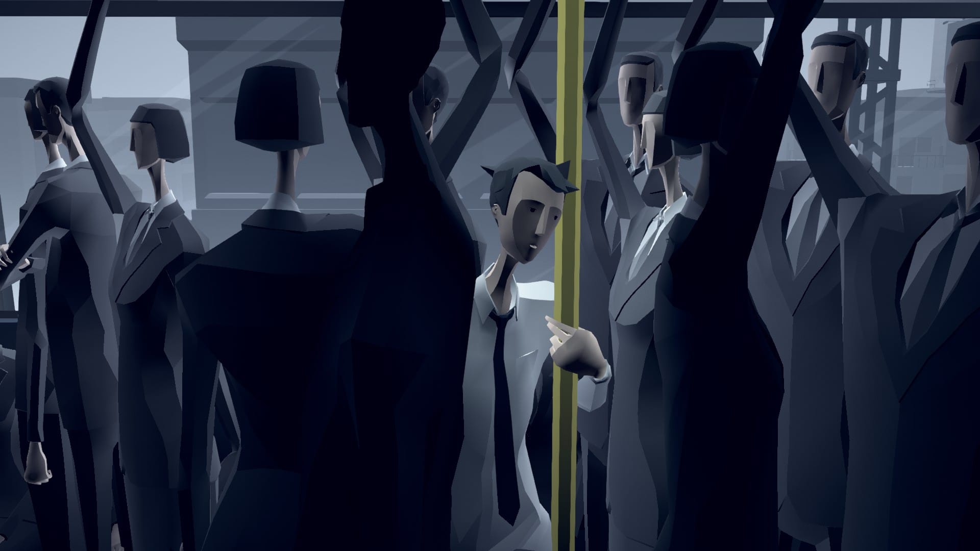 Die Atmosphäre der kalten, erdrückenden Großstadt ist sehr gelungen. Der Lowpoly-3D-Stil verzichtet an vielen Stellen auf Details, wodurch viele Orte passend zum Setting leer und steril wirken. Bei der Farbgestaltung verhält es sich ähnlich, kalte gräulich-blaue Töne sind im Alltag des Protagonisten vorherrschend. Die bedrückende Atmosphäre wird noch durch Hintergrundgeräusche verstärkt, beispielsweise indem ein unangenehmes Dröhnen fast schon zum Weitergehen drängt.