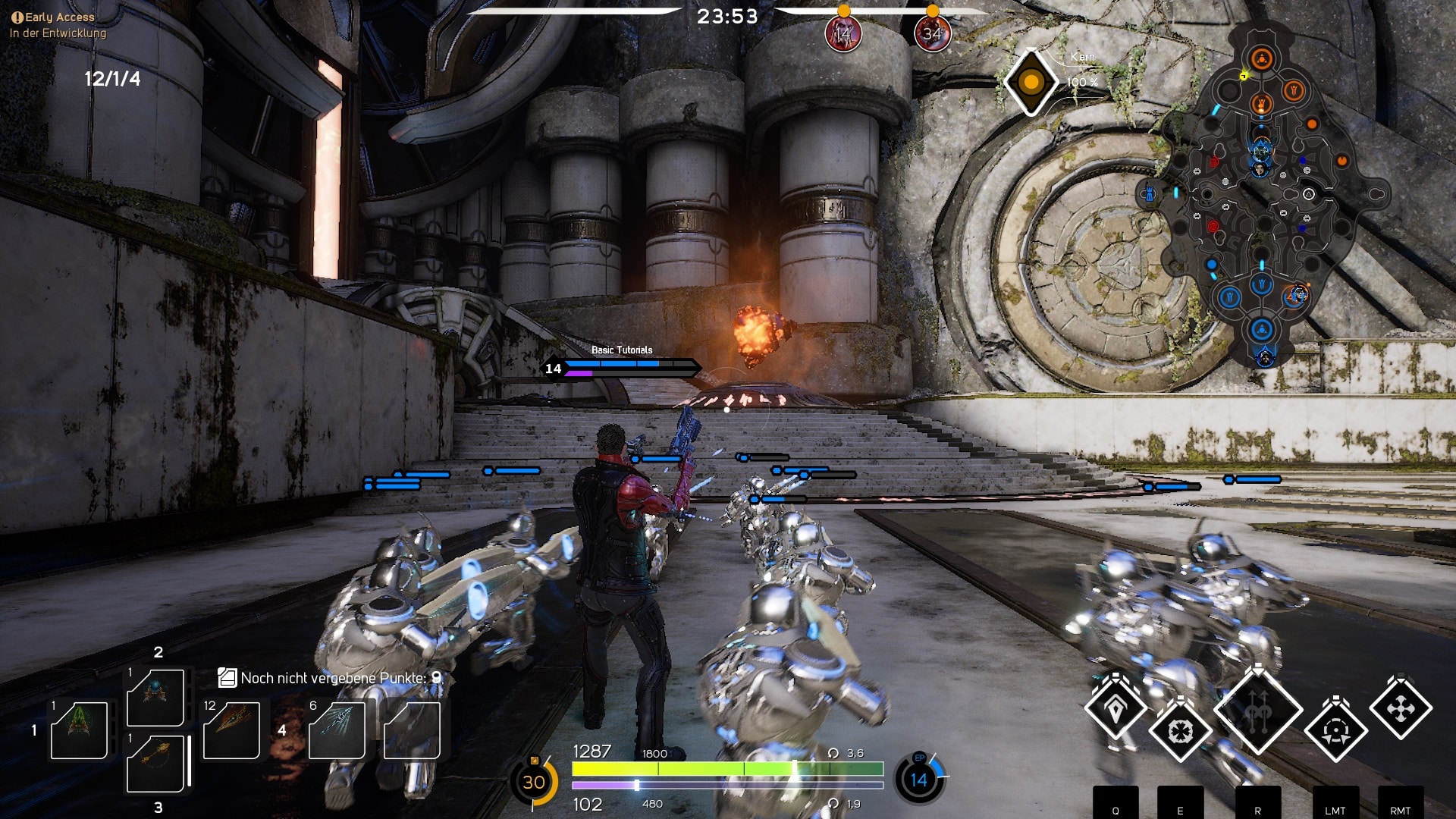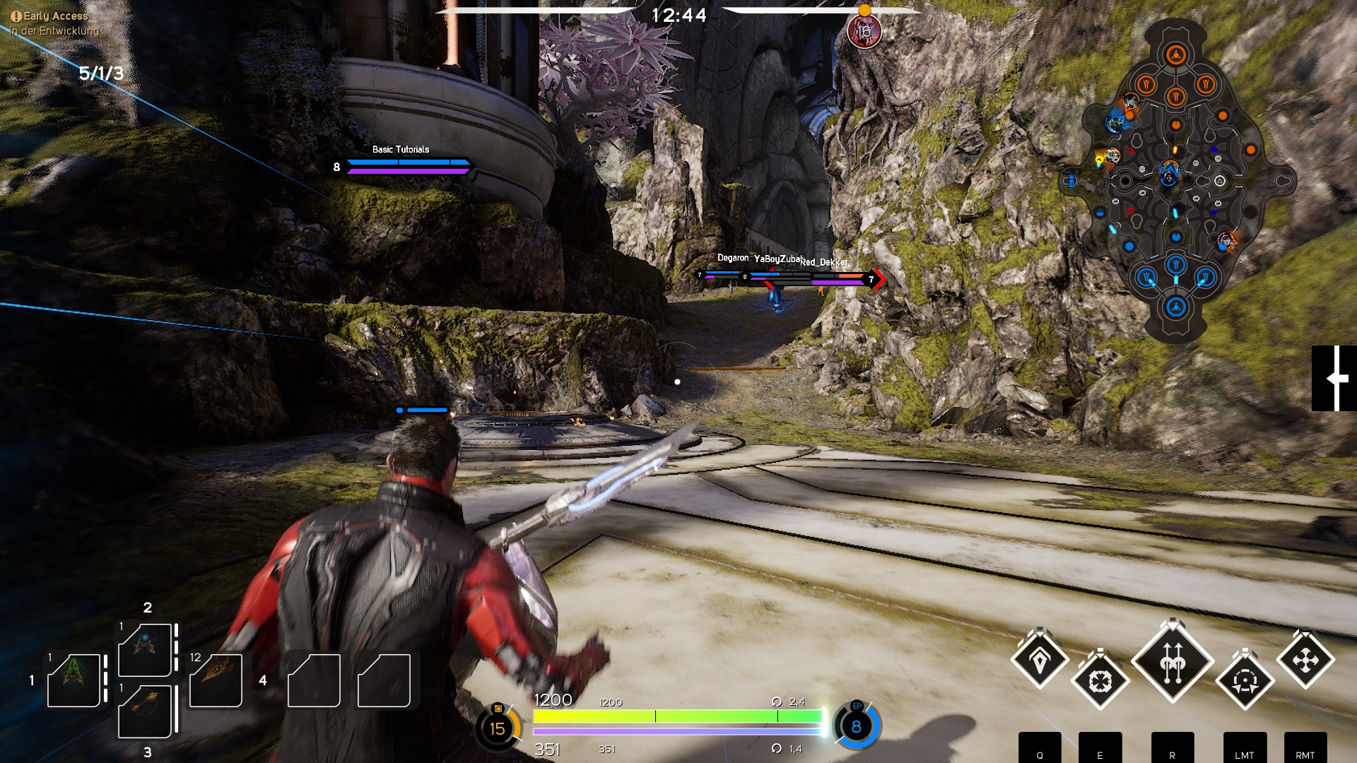 Die Steuerung von Paragon ist sehr einfach gestrickt und arbeitet präzise. Nach nur einer Runde hat man die Grundlagen des Spiels verstanden und kann sich in den Kampf gegen die KI stürzen. Das einzige wobei ich noch Probleme habe, ist das Lasthitten von den Vasallen. Doch ich denke, nach einer gewissen Spielzeit wird dies auf Dauer einfacher.