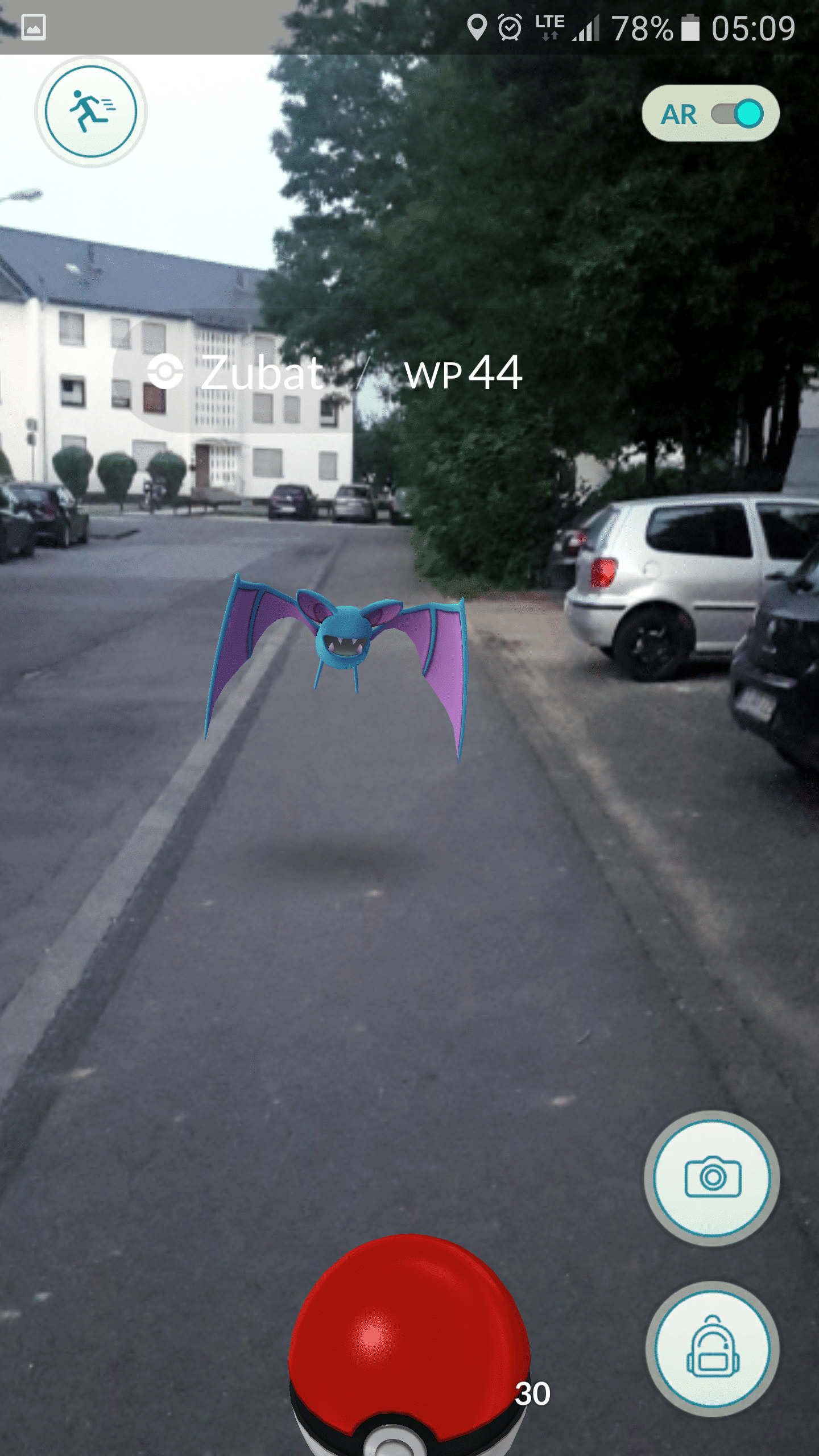 Jetzt kommen wir zur Augmented Reality. Wenn ihr ein Pokémon findet und es fangen wollt, schaltet ihr automatisch auf eure Kamera um. Dort seht ihr den Hintergrund eurer Kamera mit einem Pokémon. Es macht sehr viel Spaß die Pokémon in Augmented Reality zu fangen, da es ein ganz anderes Gefühl ist, als auf einem Gameboy oder Nintendo DS.