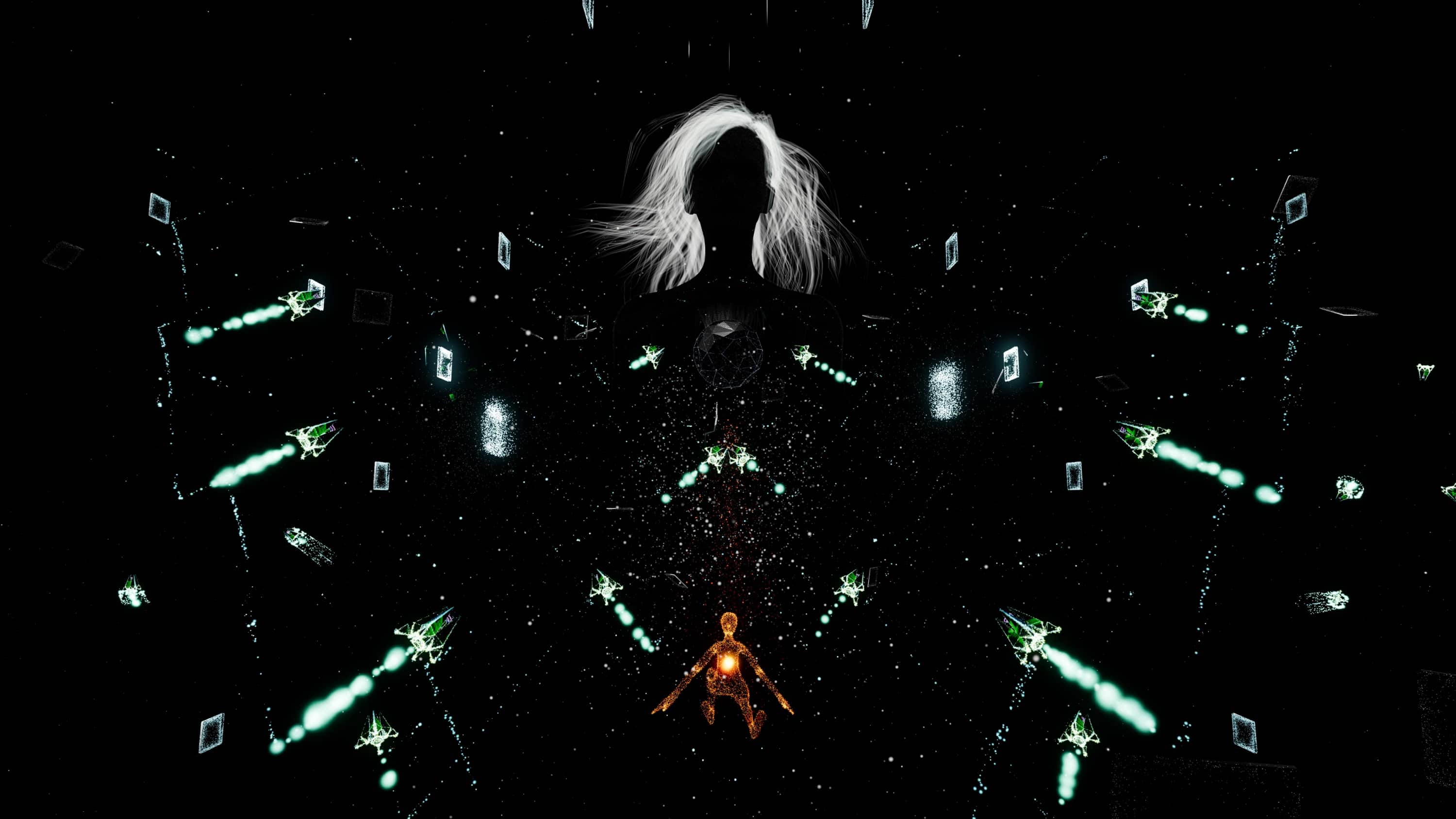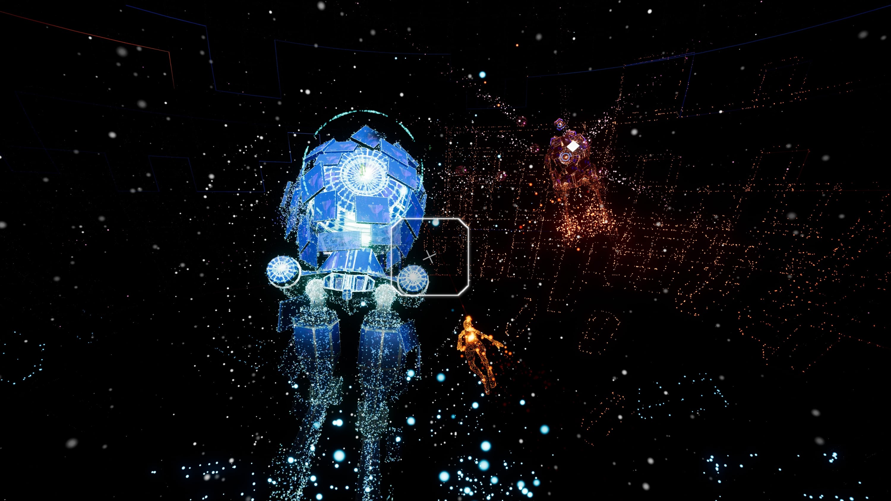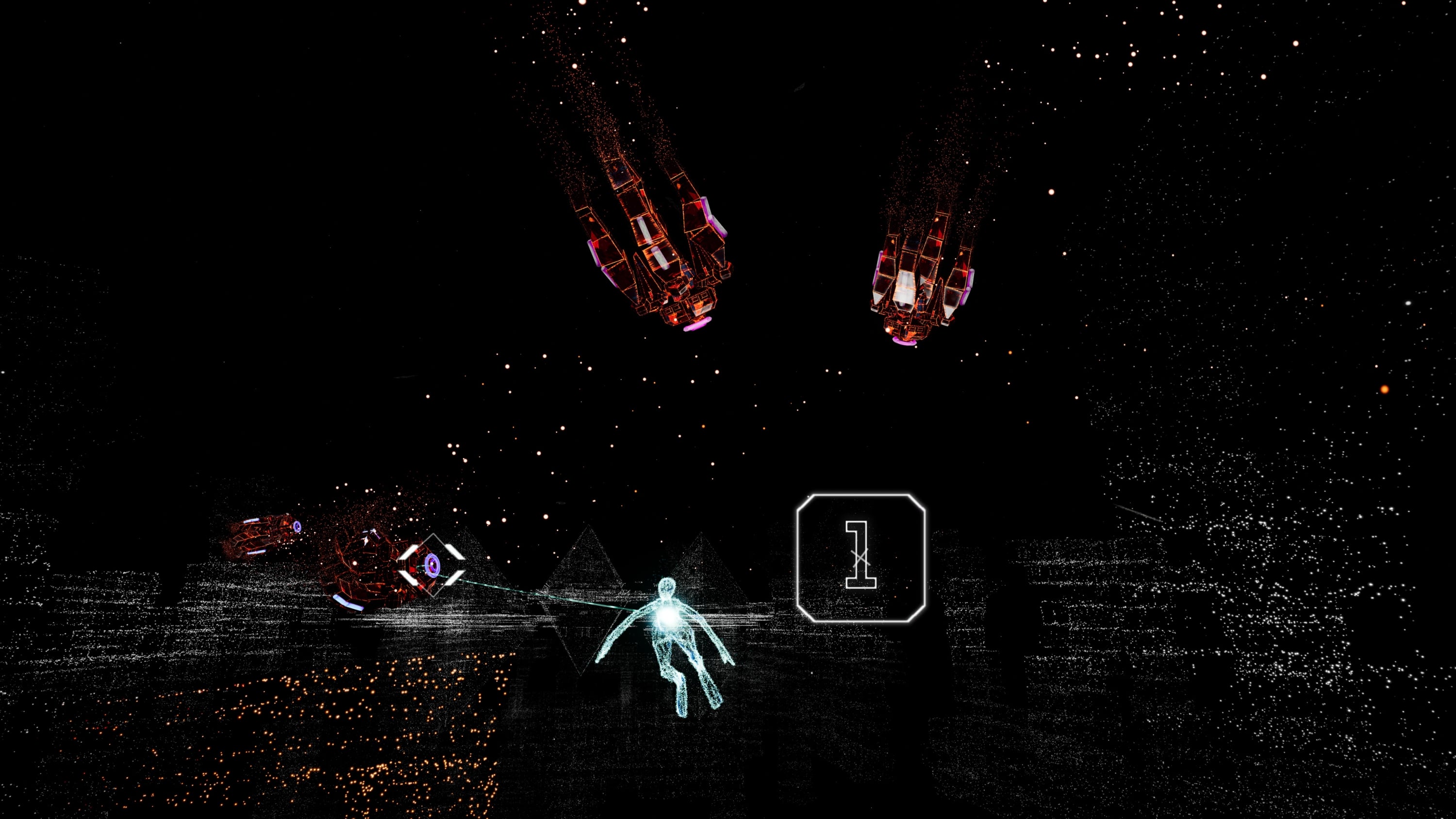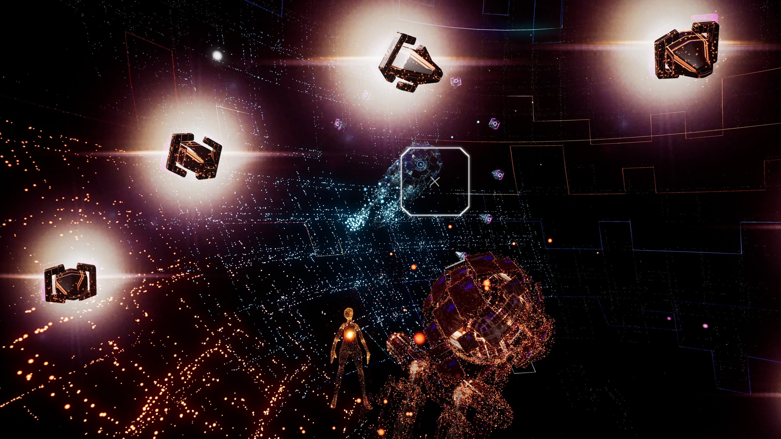 Das Spielprinzip von Rez Infinite ist ebenso einfach wie fesselnd. Ihr fliegt durch eine von elektronischen Beats geprägte Welt, in der knallbunte Partikel wie Schneeflocken auf euch niederrieseln. Immer wieder bewegt ihr das Fadenkreuz auf kreativ gestaltete Gegner und lasst ganze Virenhaufen mit einem Schuss in Pixel zerfallen.