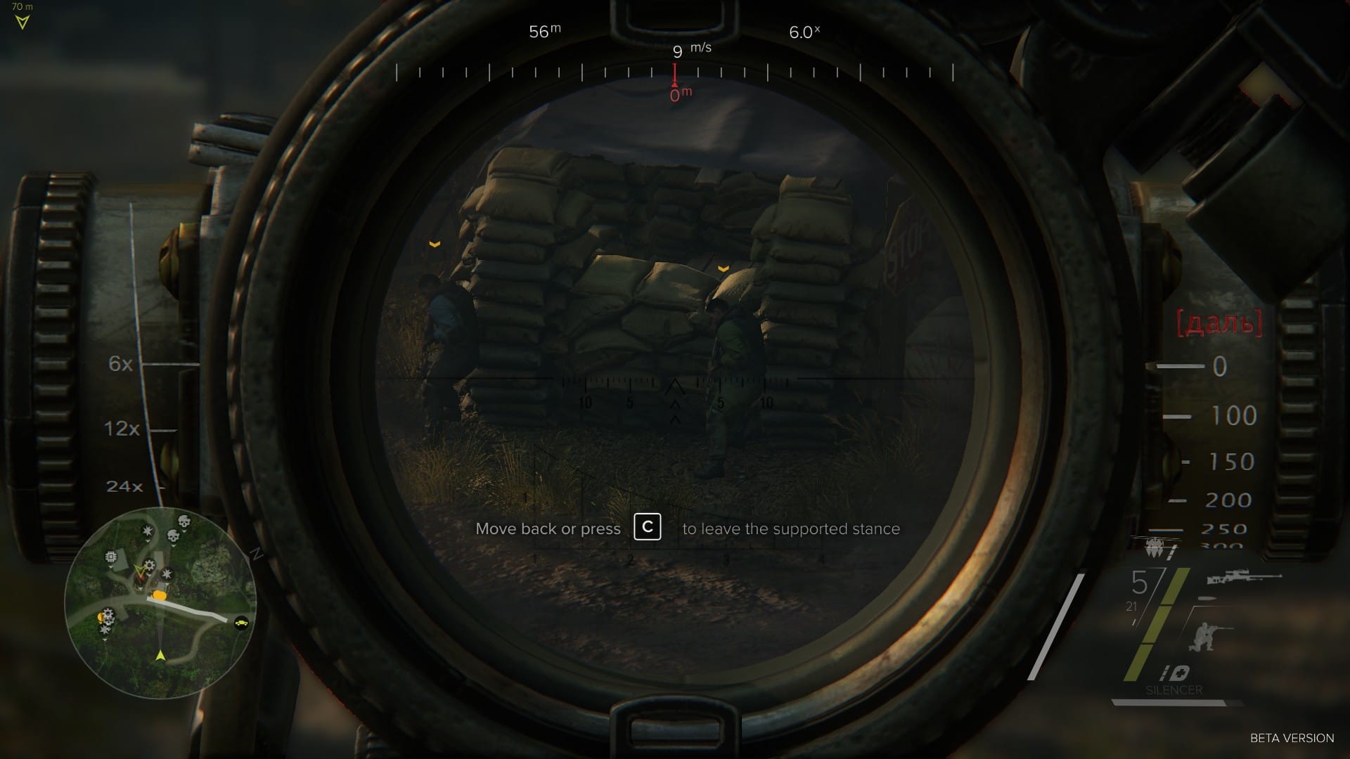 Anders als bei den beiden Vorgängern bietet Sniper Ghost Warrior 3 nur noch wenig Hilfe. Sachen wie die Zielhilfe oder das automatische Zeroing fällt komplett weg (so zumindest in der Beta). Man muss nun selbst den Schuss bei Wind und Entfernung berechnen und im richtigen Moment abdrücken, was das ganze um einiges authentischer rüber bringt, als die beiden Vorgänger. Dazu kommt noch, dass der Schalldämpfer ähnlich wie bei Metal Gear Solid 5: The Phantom Pain nach einiger Zeit aufgebraucht ist und man dank dem System eine gewisse taktische Tiefe hat. Das Fernglas der Vorgänger wurde durch eine Drohne ersetzt, welche (leider) immer noch Gegner automatisch markiert und man diese hinter Wänden noch sehen kann. Bleibt nur zu hoffen, dass man es deaktivieren kann.