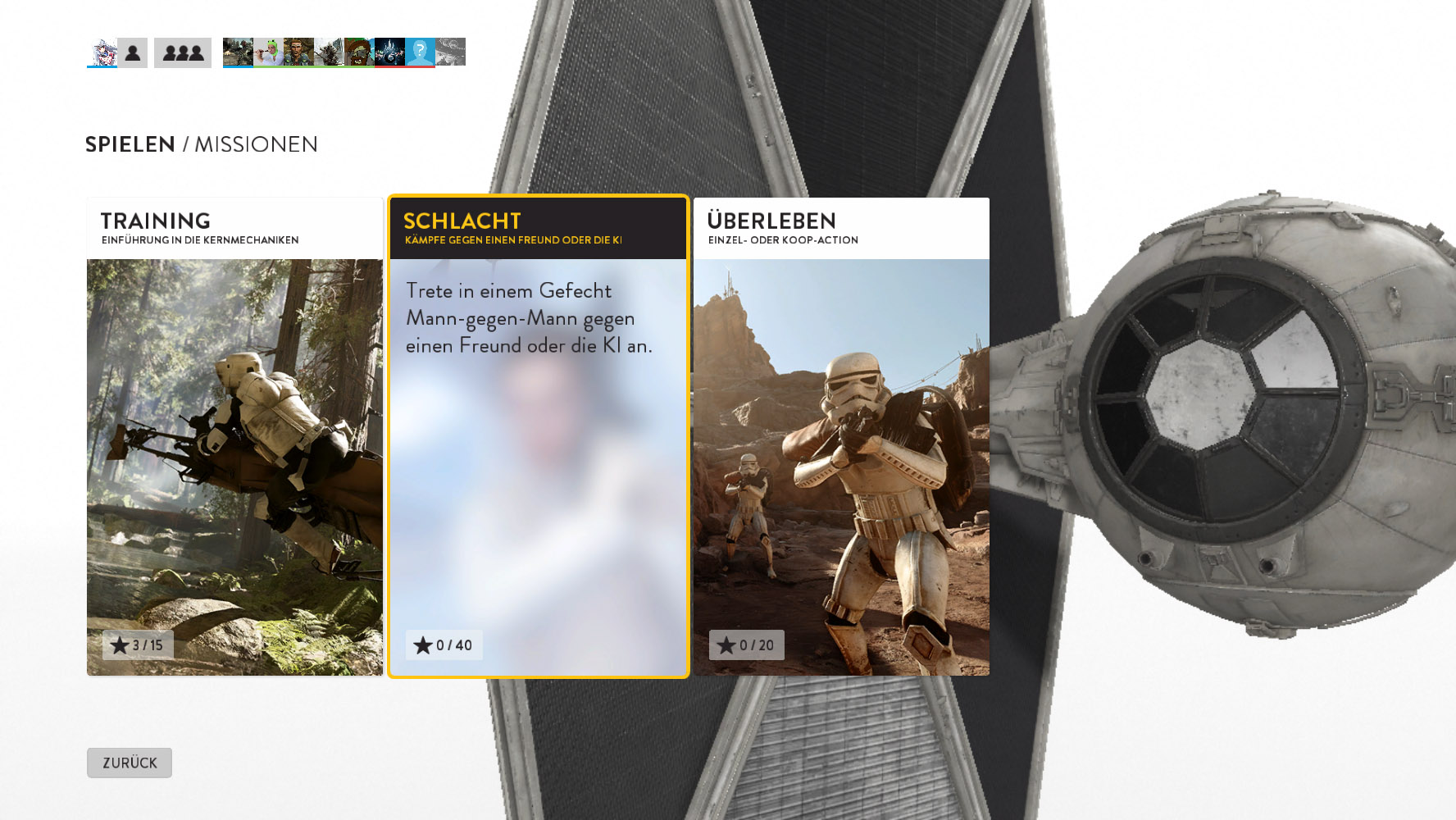 Star Wars Battlefront verzichtet leider komplett auf eine Story. Stattdessen bekommt Ihr drei kleine Einzelspieler-Modi, die man aber auch jederzeit mit einem Freund spielen kann. Darunter gibt es die Trainingsmissionen, in denen Ihr die Grundlagen von Star Wars Battlefront, wie das Fliegen kennenlernt. Dann gibt es noch Schlacht, in der Ihr gegen die KI oder einen Freund antreten könnt. Das Ziel in Schlacht ist es 100 Token für sein Team zu gewinnen. Zu guter letzt gibt es noch den, aus der Beta bekannten Modus Überleben, in dem Ihr 15 Angriffswellen überleben müsst.