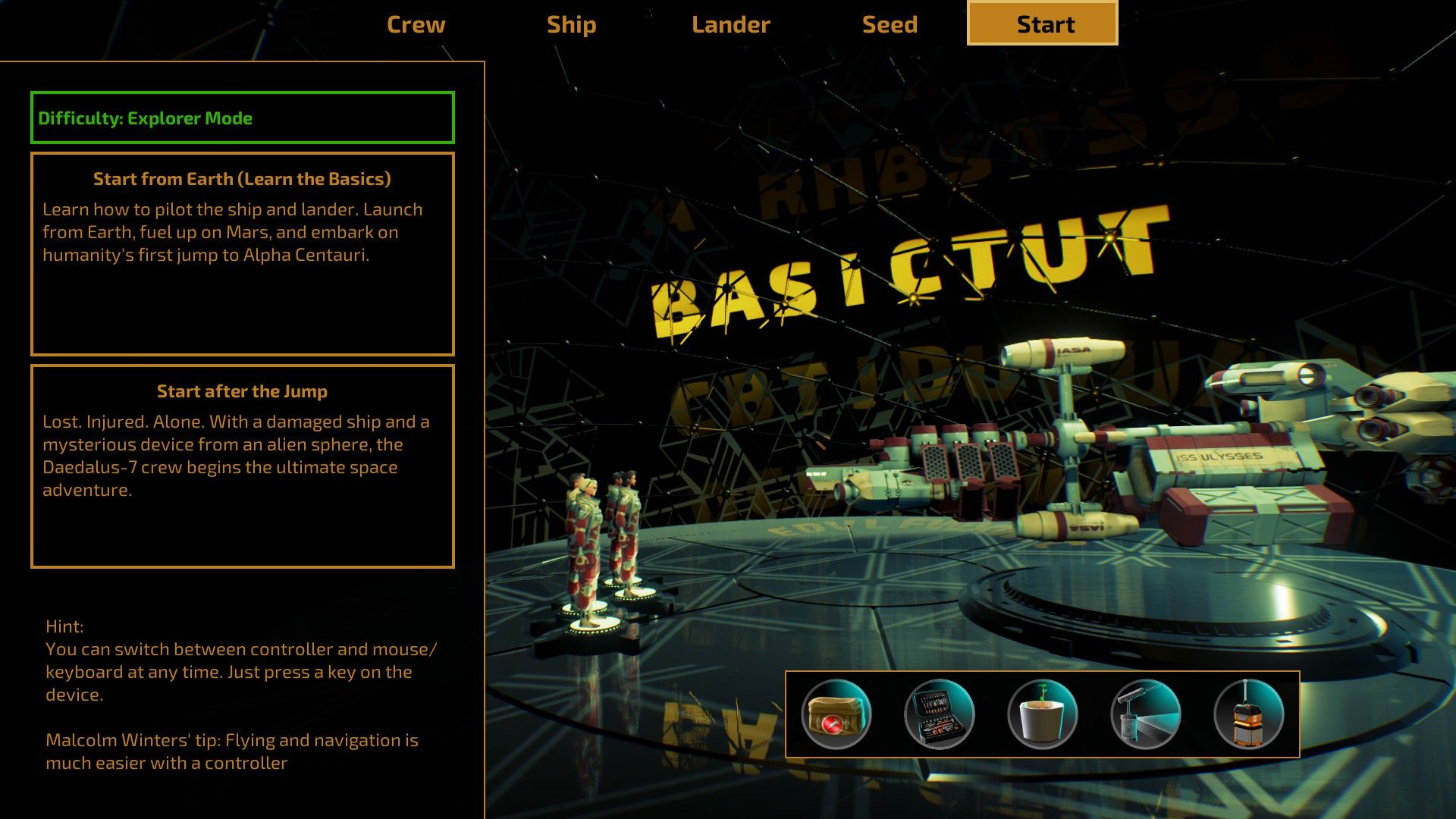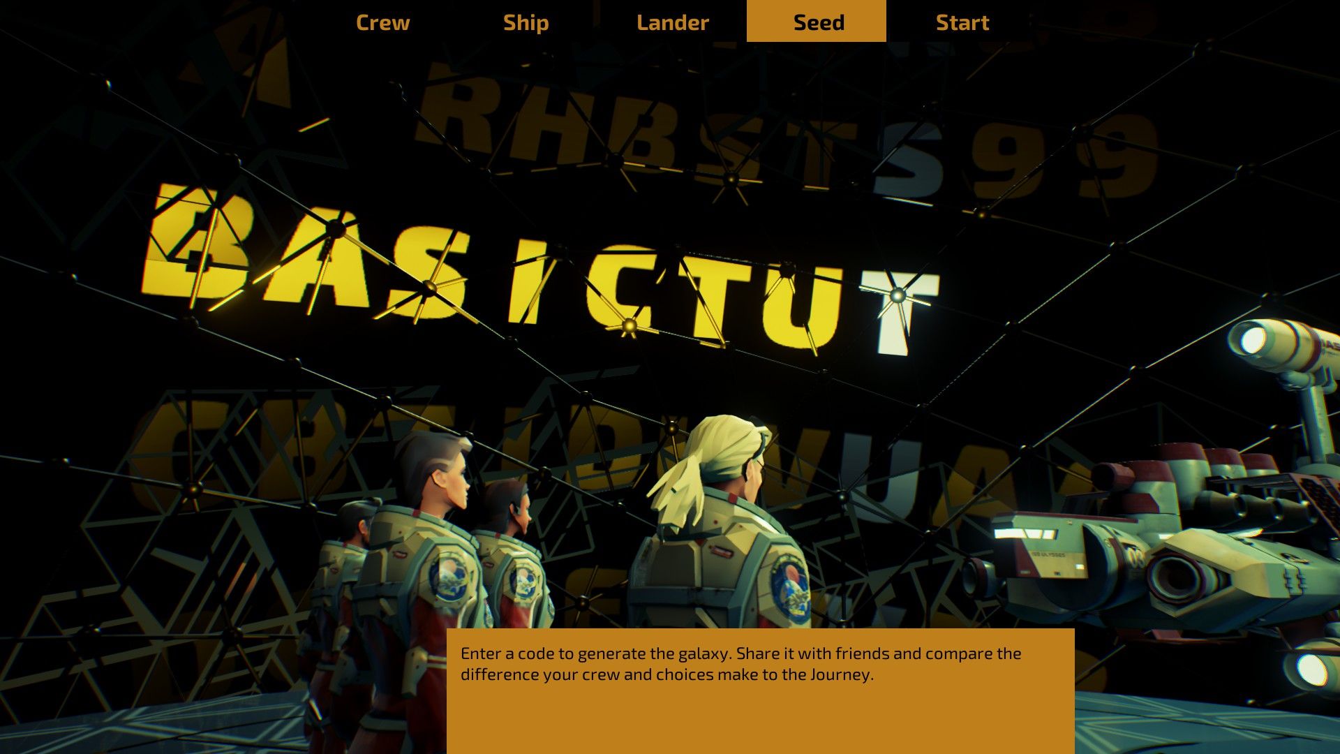 Der allerletzte Punkt vor dem Start ist der sogenannten „Seed“. Wählt ihr beispielsweise den Seed „BASICTUT“ und die Systeme, Aliens und Planeten gefallen euch super, könnt ihr diesen einfach an einen Freund weitergeben. Er kommt dann in das gleiche System. Hat im Grunde gleiche Vorrausetzungen, insofern er die gleiche Crew wählt.