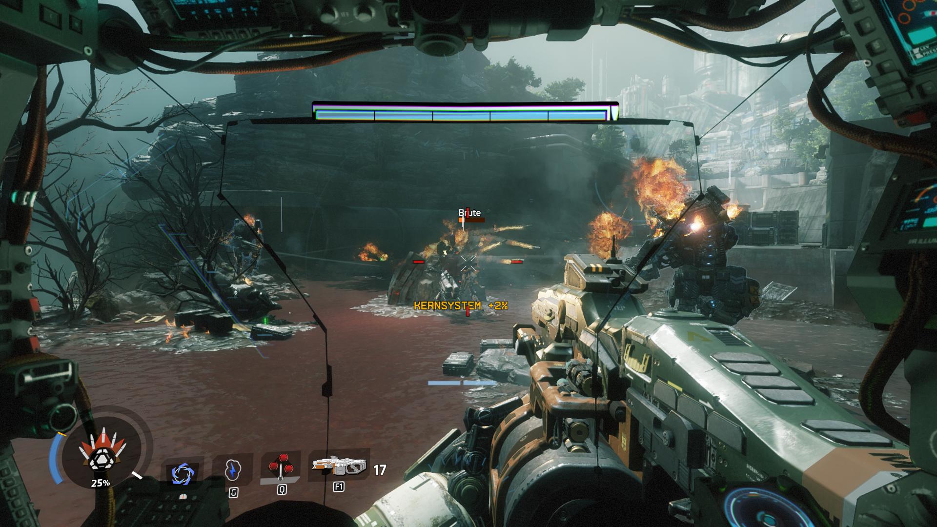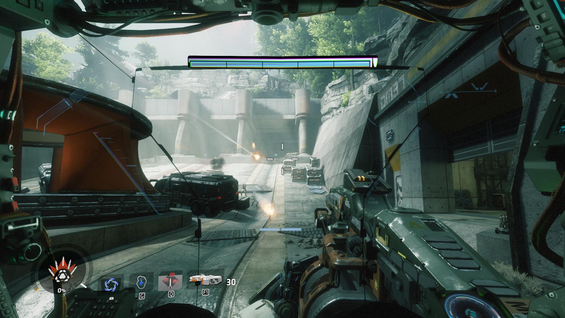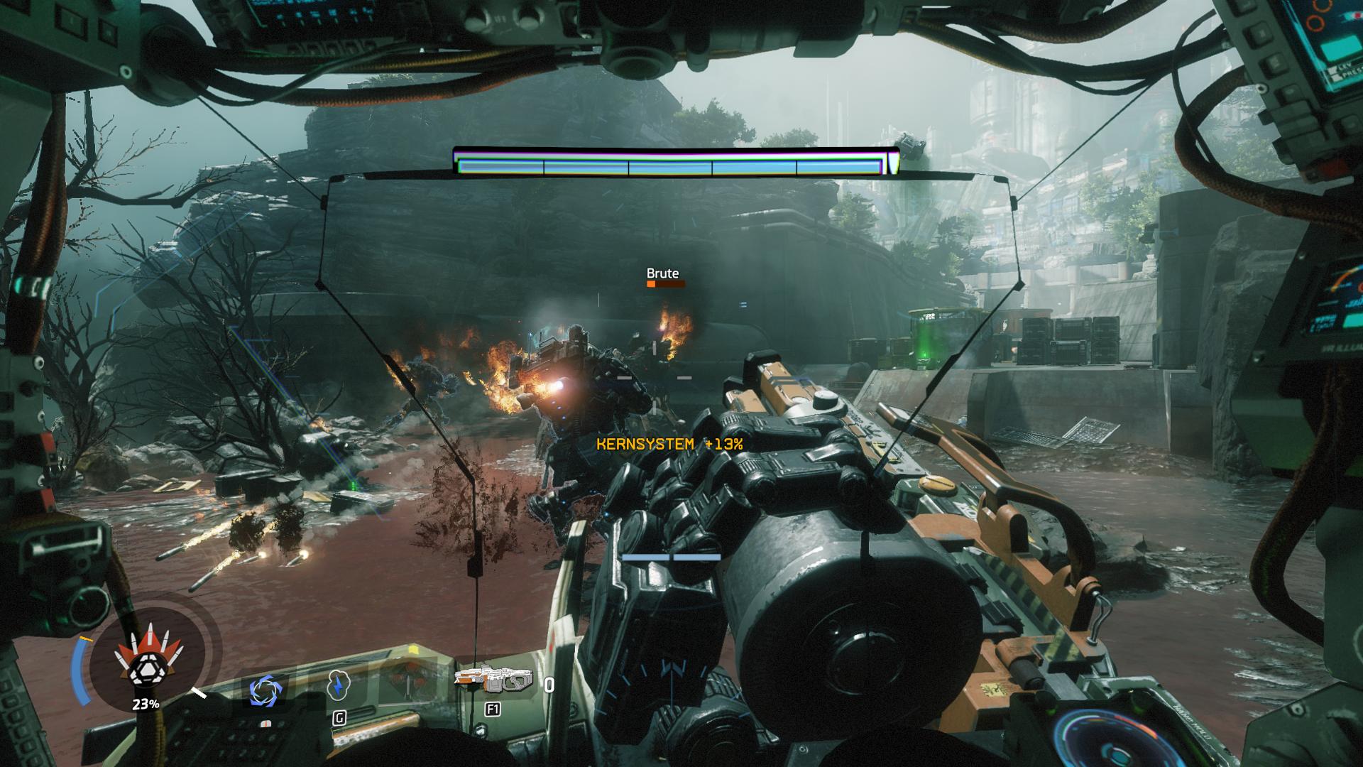 Auch sehr spannend sind die kleinen Boss-Kämpfe, von denen sich sechs in der Story befinden. Die Bosse haben jeweils andere Titans, mit verschiedenen Waffen und Gadgets, welche aber mit ein bisschen Köpfchen alle schnell weg sind. Auch unser Titan findet auf dem Weg zum Ziel verschiedene Waffen und Gadgets, welche man mit wenigen Klicks ausrüsten kann. Als Pilot findet man natürlich auch verschiedene neue Waffen und Gadgets, wobei ich gefühlt mehr Schrotflinten gefunden habe, als automatische Waffen. Dies hat mich aber weniger gestört, da es mit Schrotflinten um einiges cooler