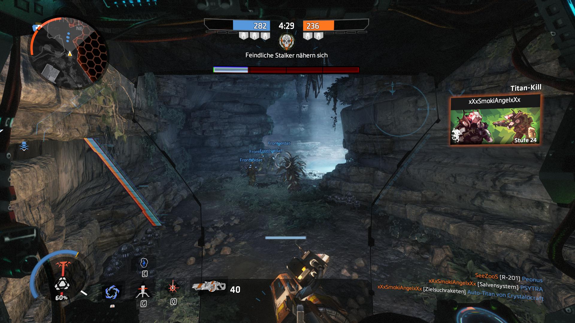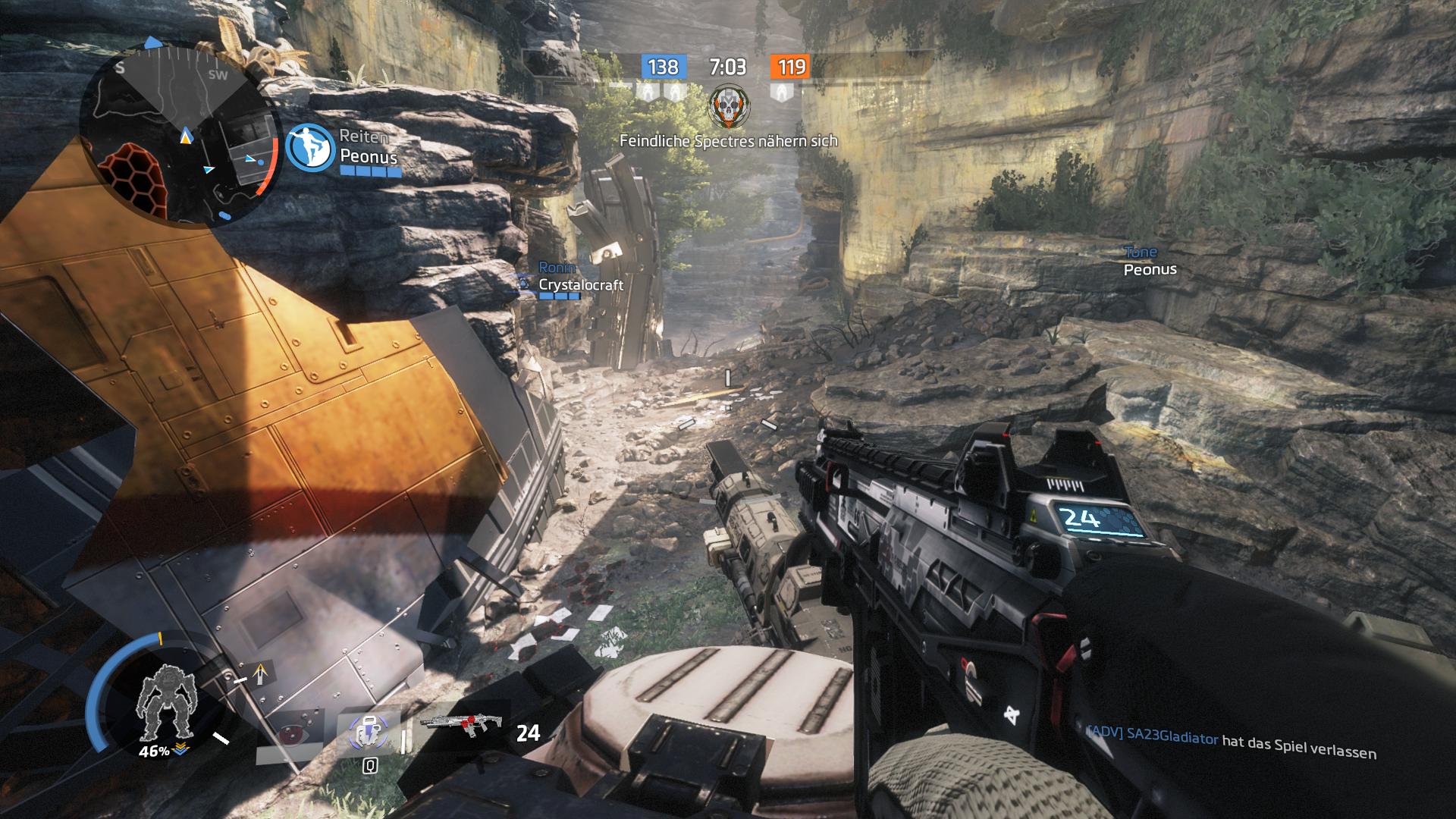 Sobald man wieder mit BT-7274 zusammen ist, ist man nicht auf den Titan angewiesen. Wer keine Lust hat in dem Titan zu sitzen, kann einfach aussteigen und an der Seite des Titan außerhalb des Cockpits gegen seine Gegner kämpfen.