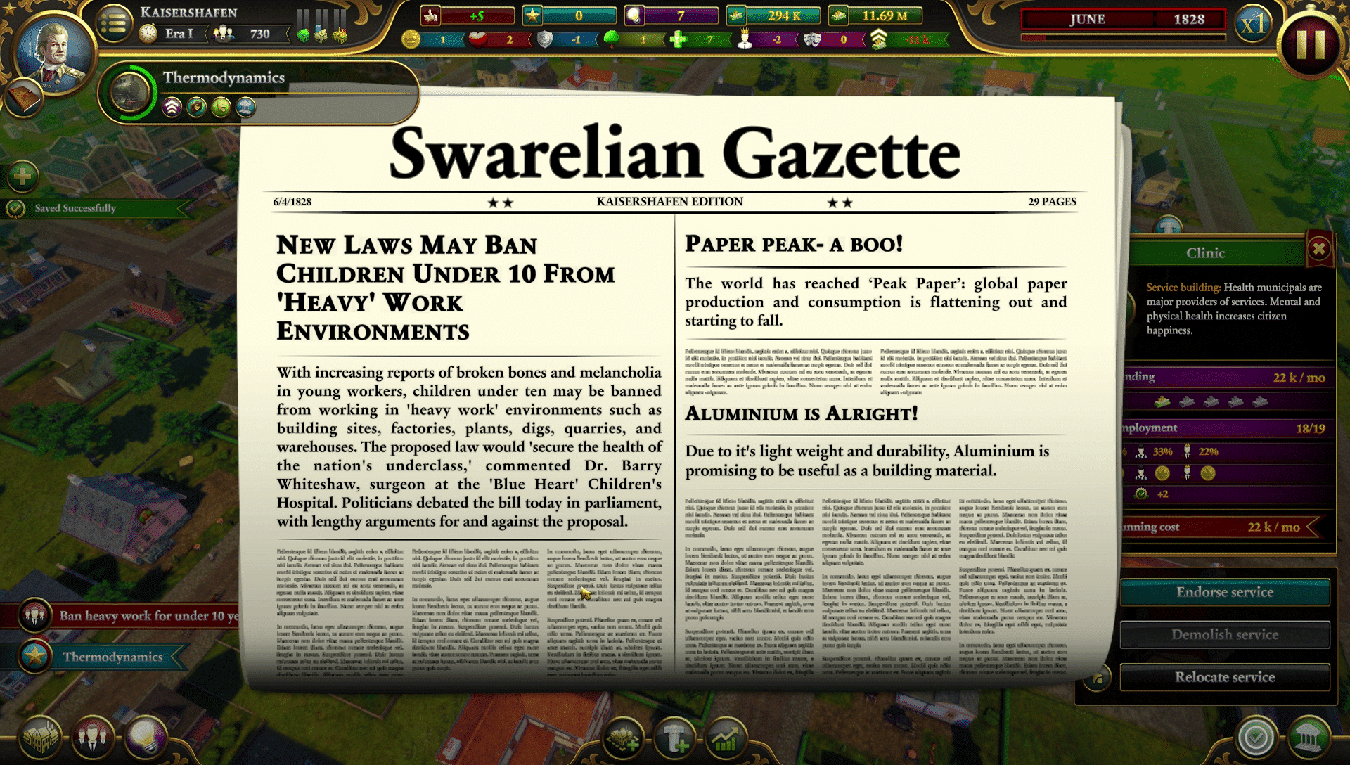 Schnell zeigt sich, dass es viel für euch zu tun gibt, denn im frühen Jahr 1831 gibt es inmitten des swarelischen Kaisershafens nichts als trostlose Leere und brachliegendes Land. Nun ist es an euch, Gebäude zu errichten, für eine reibungslose Infrastruktur zu sorgen und so eine pulsierende Metropole aus dem Boden zu stampfen. Nebenher gilt es, hitzige Debatten zu führen, Politiker auf seine Seite zu ziehen oder diese mit korrupten Mitteln zu bestechen. Reichstreue Parteien müssen von jeder kleinen Änderung überzeugt werden, andernfalls sind euch sprichwörtlich die Hände gebunden. Während die Parteien beispielsweise vehement eine weitere Steuererhöhung durchsetzen wollen, wandeln sich eure Bewohner bei jeder weiteren Abgabe zu rebellischen Wutbürgern. Zunehmend wird deutlich, dass euch das Prinzip des Cityrulers weit mehr abverlangt als das des bloßen Citybuilding.