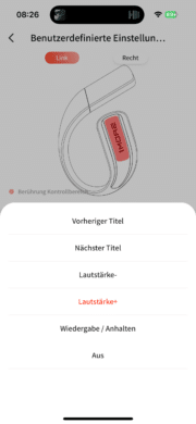 Innerhalb der App könnt ihr aber für das doppelte sowie dreimalige Antippen andere Aktionen einstellen und das für beide Seiten individuell. Damit lässt sich dann beispielsweise die Lautstärke regulieren oder zum vorherigen beziehungsweise nächsten Titel springen.