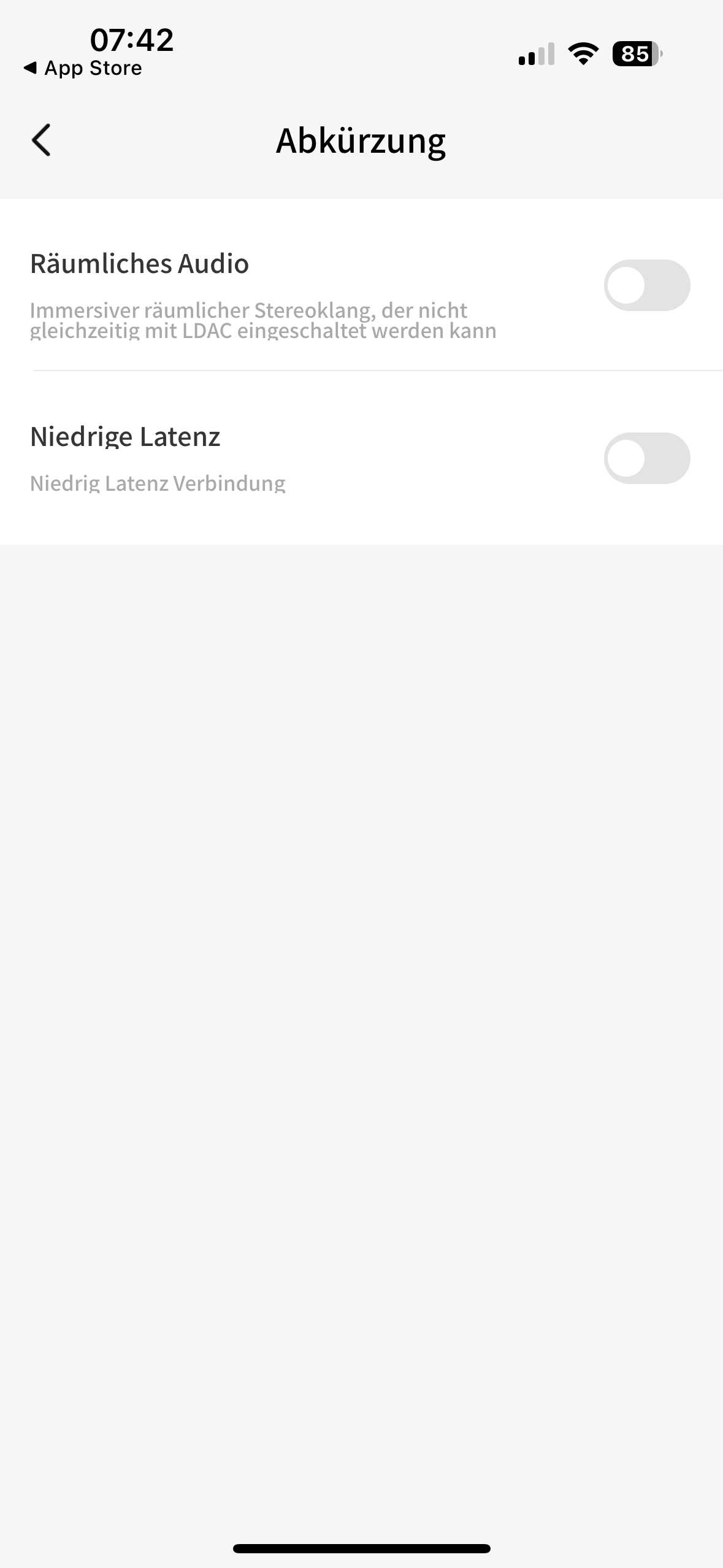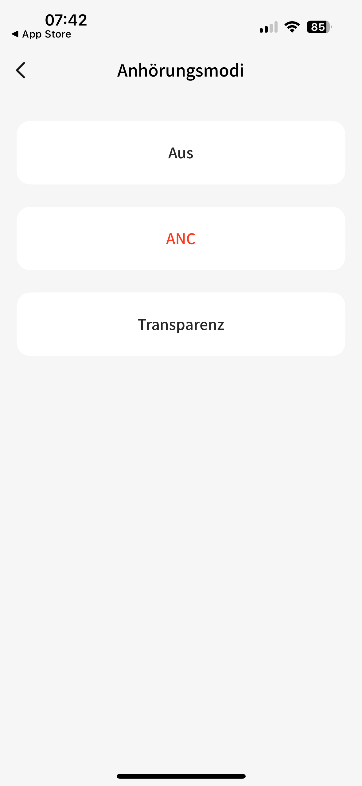 Neben OTA-Firmware-Updates gibt es ansonsten aber nicht viele Gründe, die App zu nutzen. Zumal diese recht problembehaftet ist: Ziemlich häufige zeigte mir die App an, dass der Kopfhörer nicht verbunden sei – obwohl dieser gerade Musik abspielte. Da hilft nur Ein- und Ausschalten.