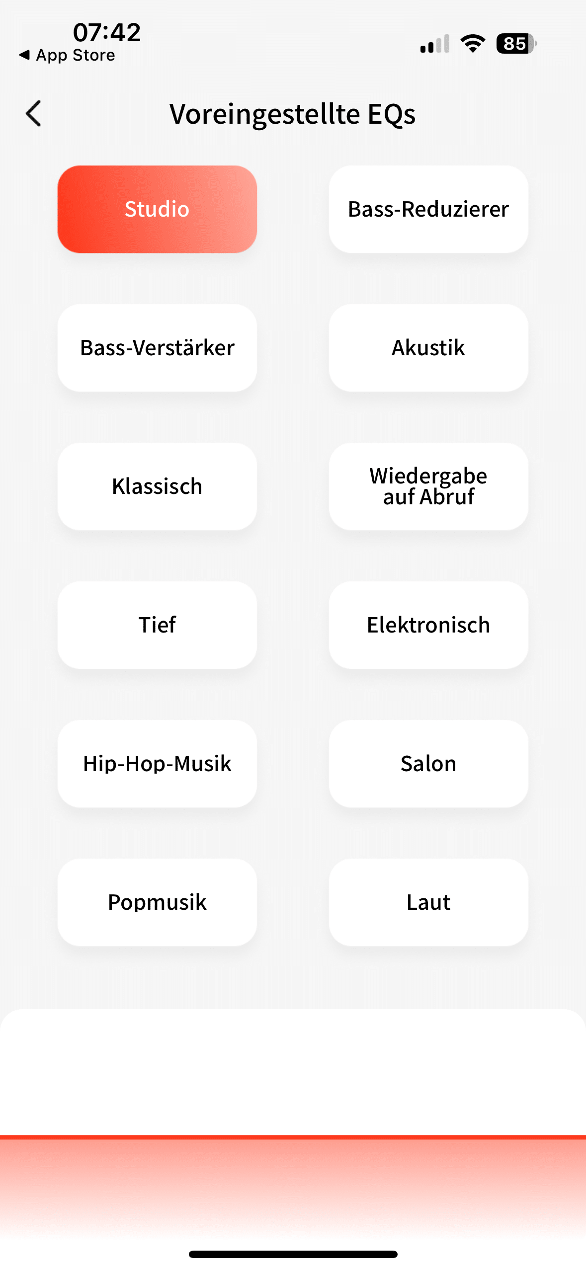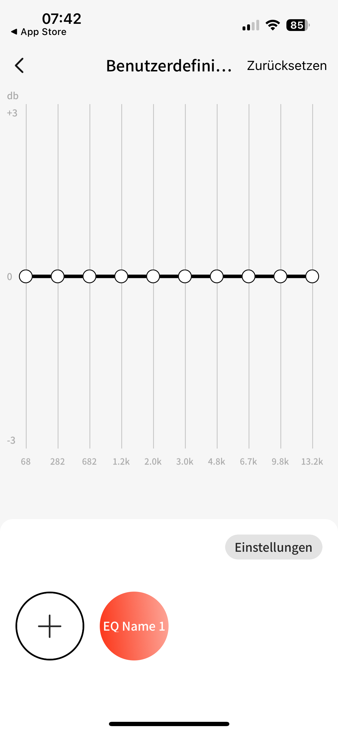 Hat man sich aber erst einmal durchgehangelt, geht der Funktionsumfang der App in Ordnung. Wahnsinnig viel einstellen lässt sich zwar nicht, aber immerhin gibt es 12 Equalizer-Presets und sogar eigene 10-Band-EQs, mit denen ihr Einfluss auf den Klang nehmen könnt.