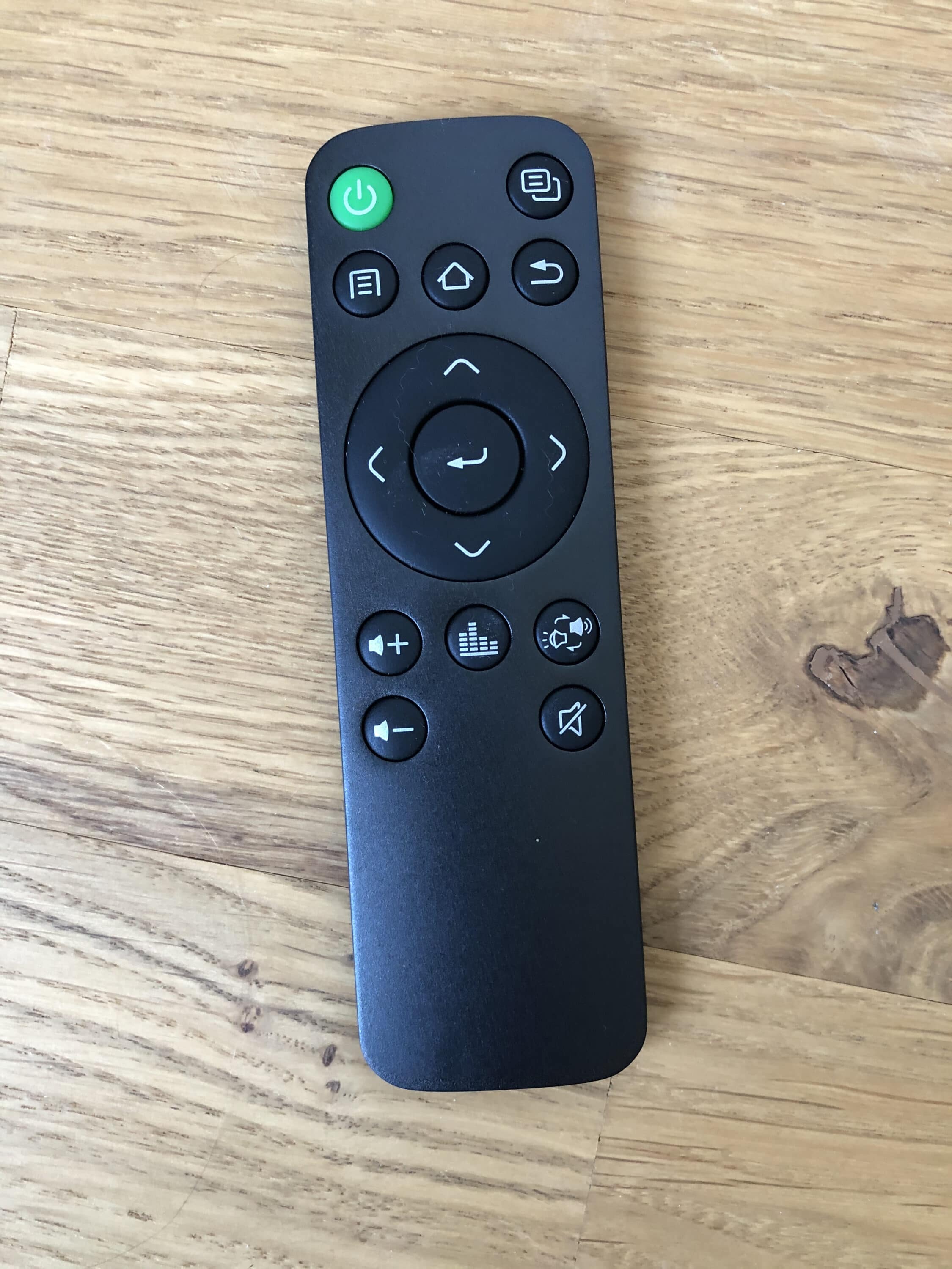 Bei der Fernbedienung greift der Hersteller auf ein handelsübliches Modell zurück. Anders als der Beamer selbst kommt diese nicht in einer hochwertigen Alu-Optik, sondern klassischem Plastik daher. Die Aufmachung sowie Größe erinnert stark an die Fernbedienung der Fire TV Serie aus dem Hause Amazon. Nicht so gut gefallen mir die Druckpunkte der einzelnen Buttons. Diese wirken mitunter ein wenig schwammig.